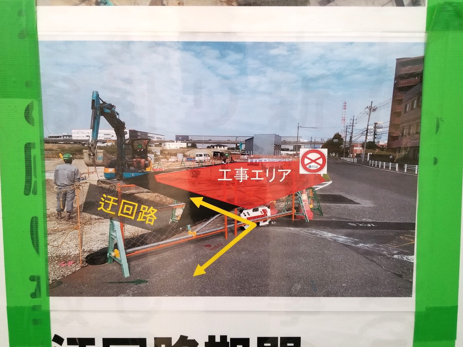 案内板には工事エリアと迂回路の写真もあってわかりやすくなっています。