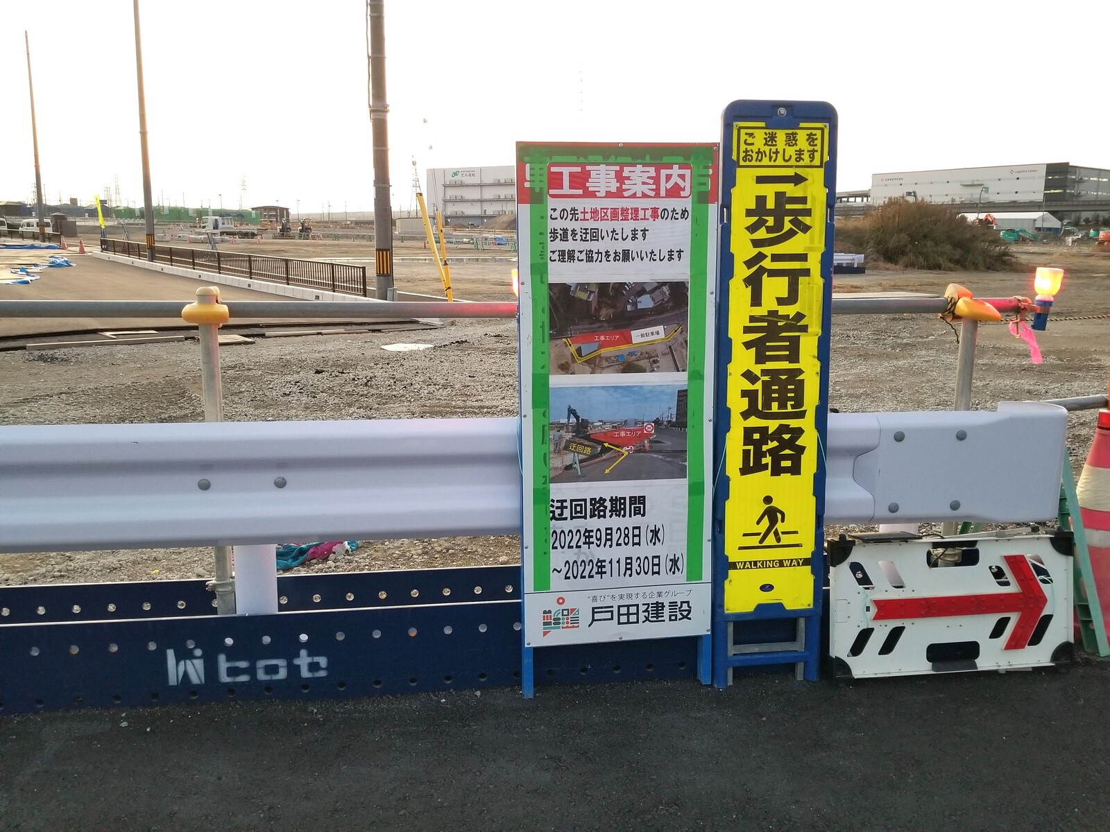 迂回通路の出入り口の近くには工事の案内板も設置してありました。