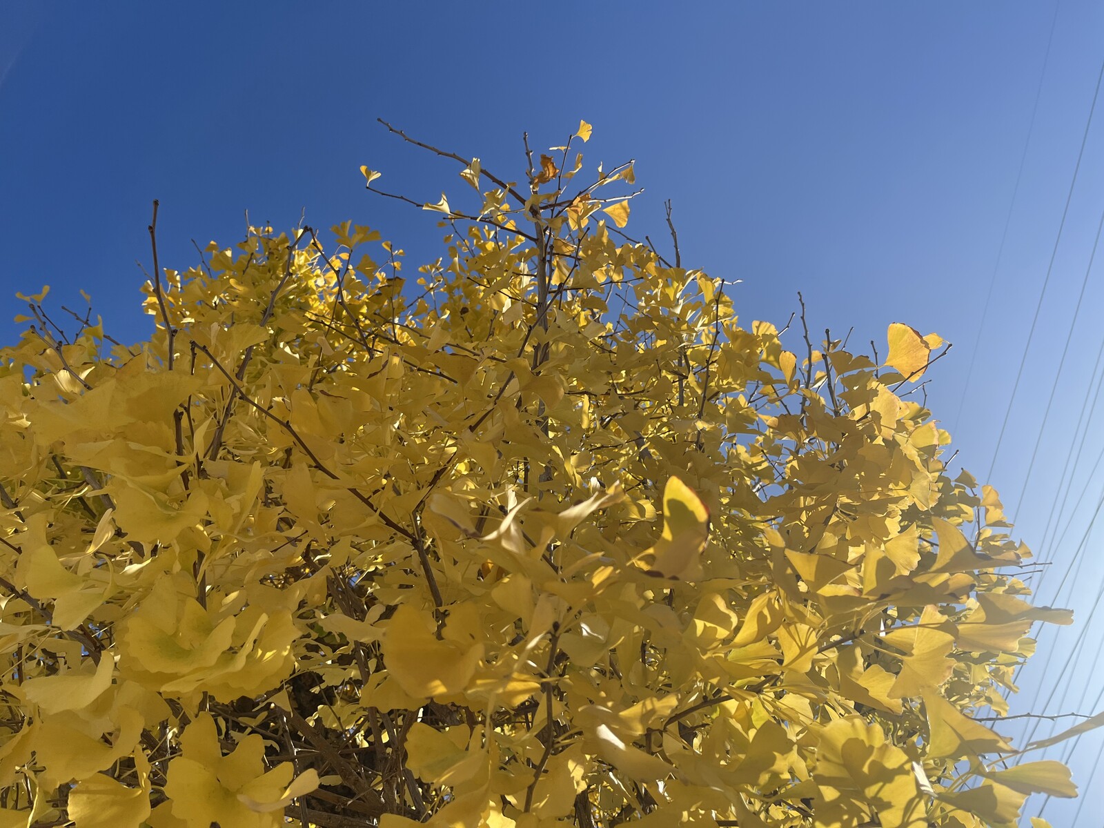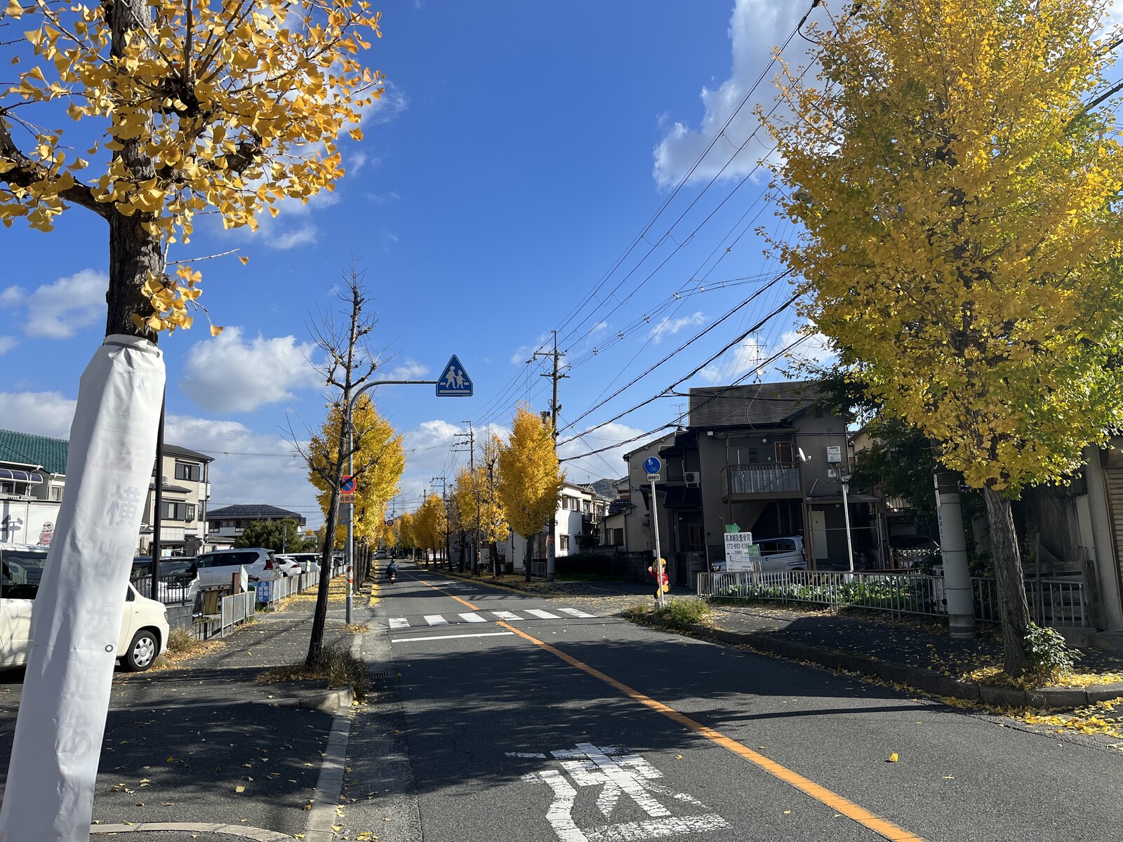 この辺りの道沿いは、両脇の街路樹が全て銀杏の木となっていて、紅葉がピーク。