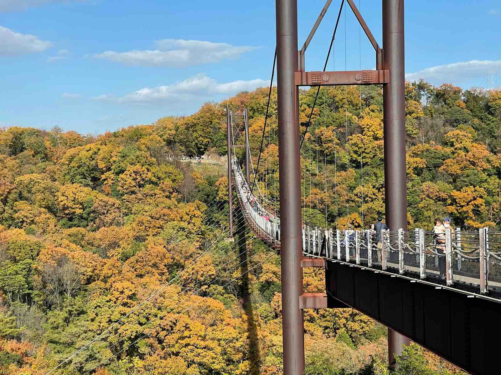 星のブランコの紅葉がピークに!人出もピークで混雑してきてる