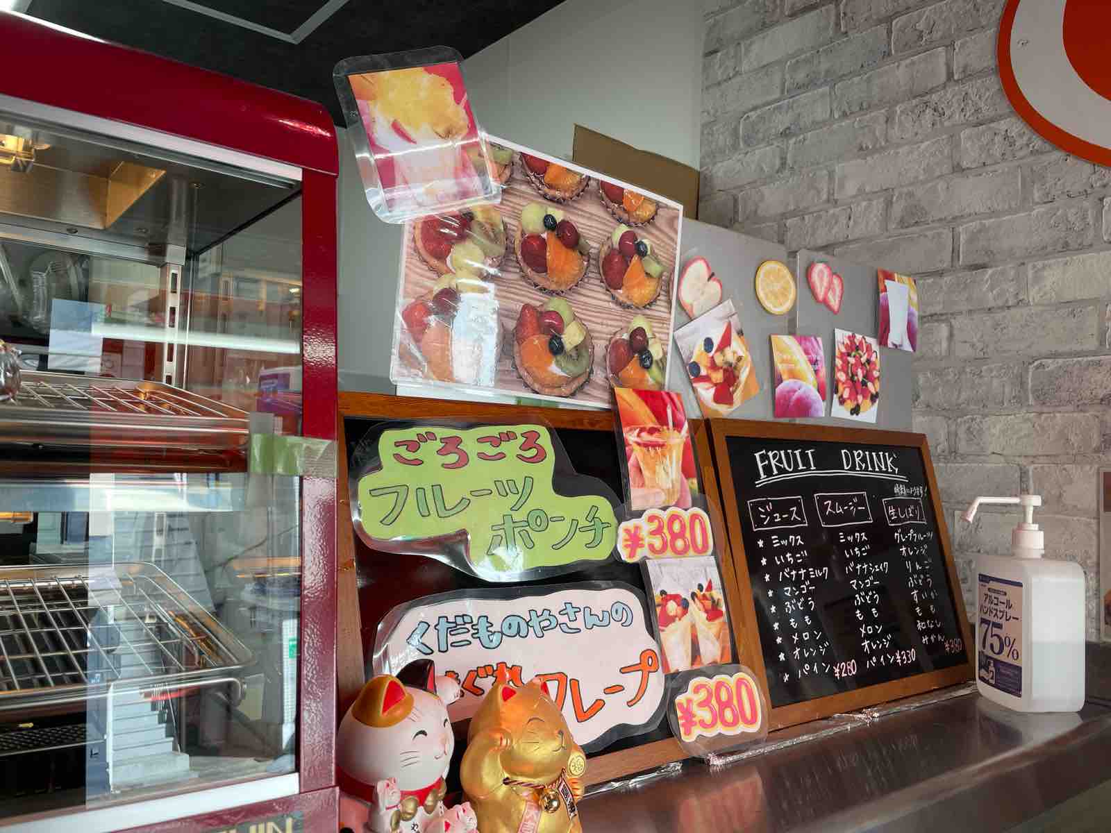 フルーツタルトやゼリーが入っているショーケースの上に