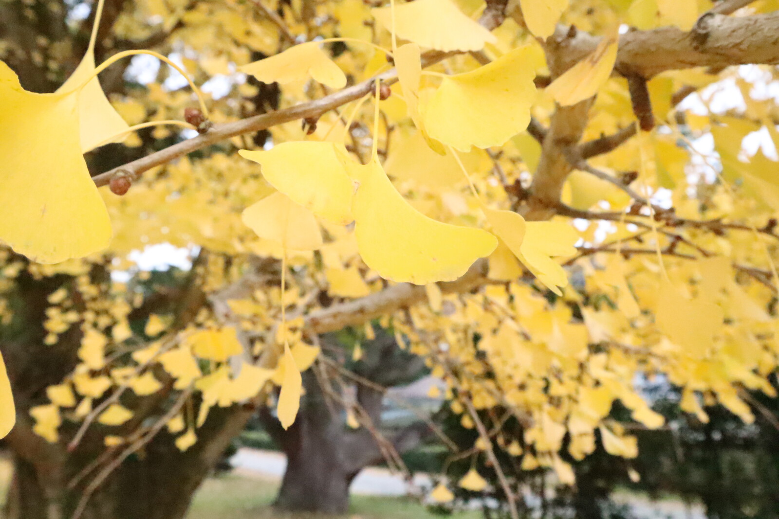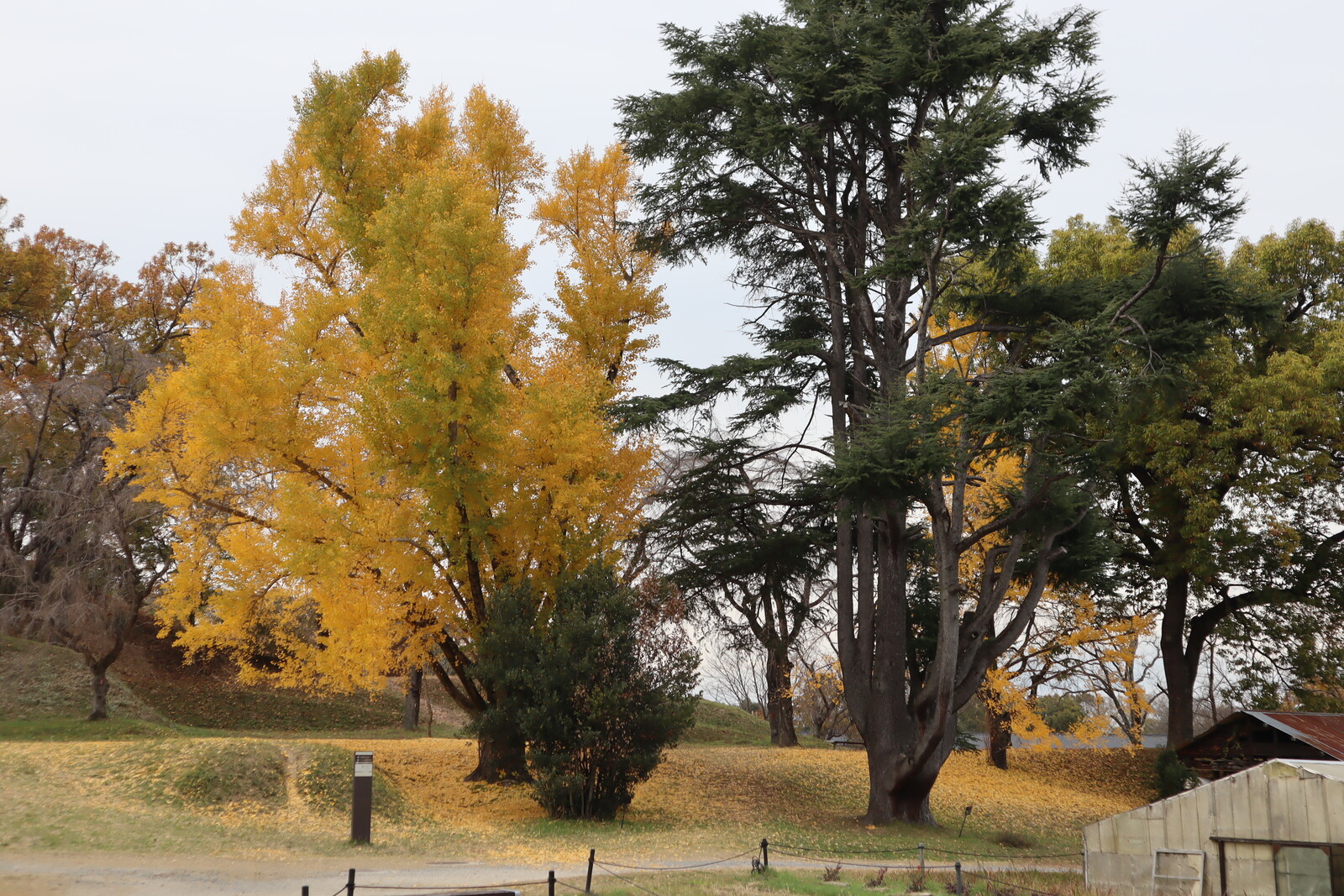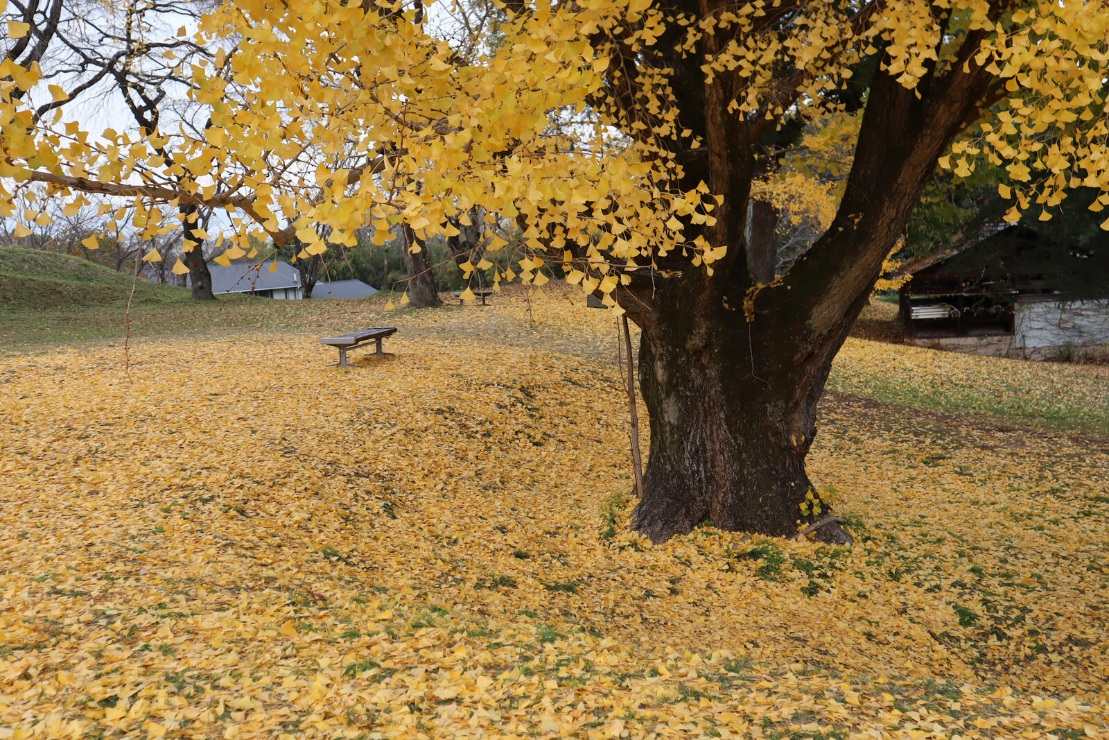 まだ間に合う!大阪公立大学附属植物園の大イチョウの木が見頃。黄金の絨毯になりかけている!
