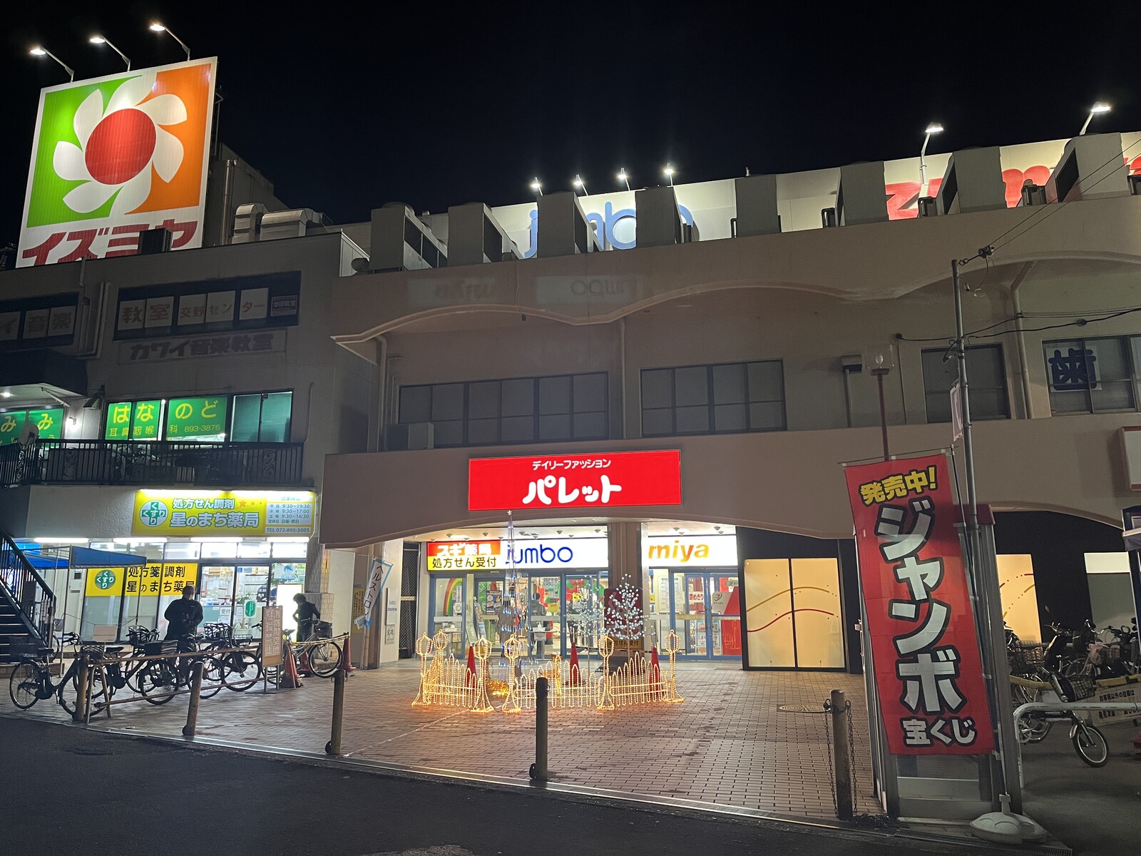 例えば、イズミヤなどが入ってる私部のじゃんぼスクエア入口のところは例年こんな感じでトナカイさんとかの電飾飾りが出ていたり、星田駅前商店会のところでも先日から商店会ライトアップが始まったり、森区民ホールのところではフェンスのところがクリスマスイルミネーションになっていたりetc..