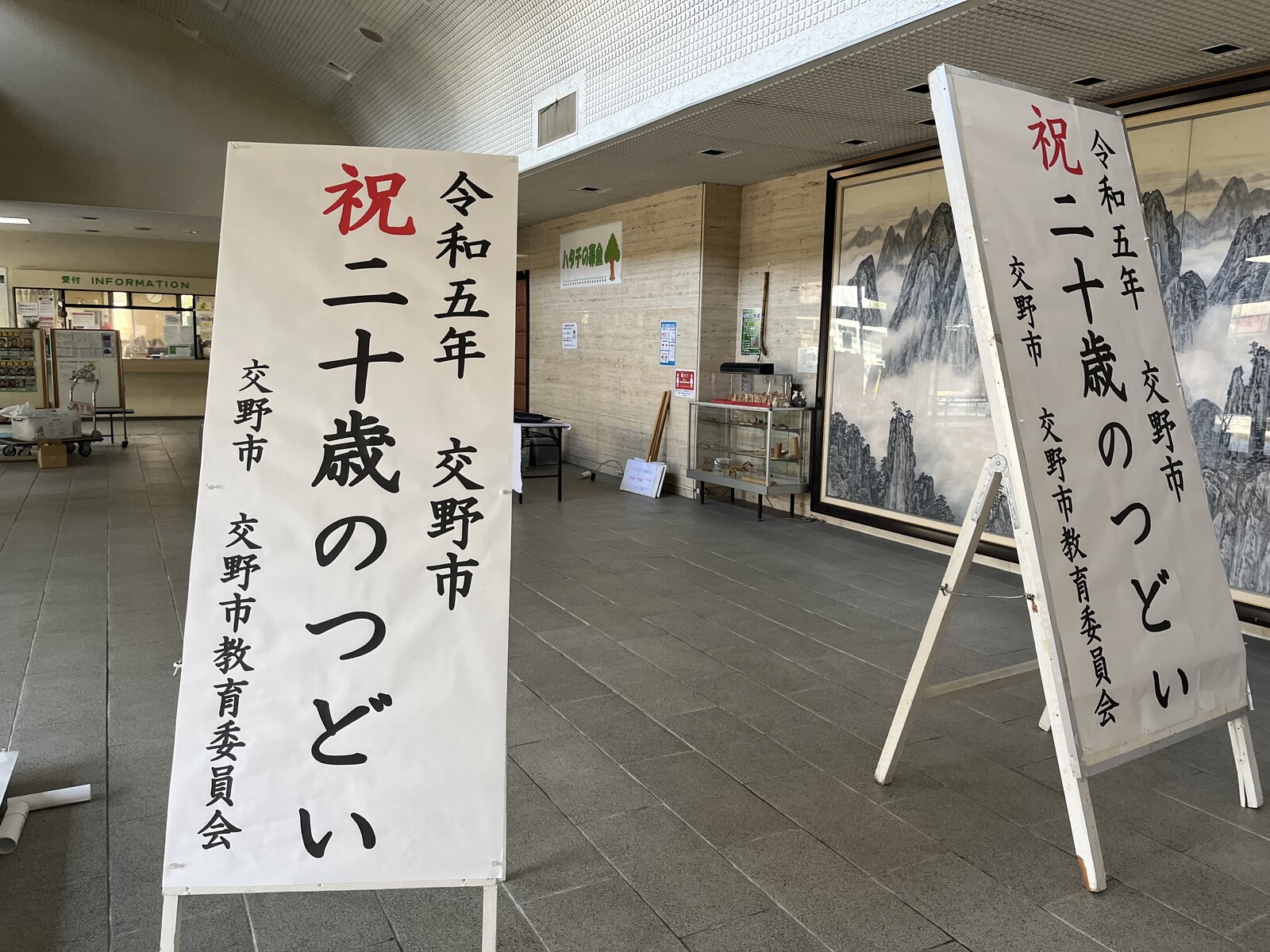 昨年までも、同じような看板が出ていたんですが、二十歳のつどいバージョンになってました。