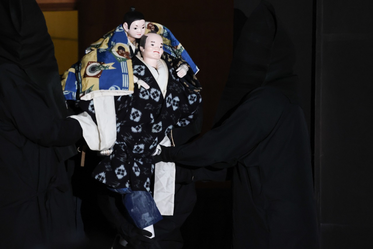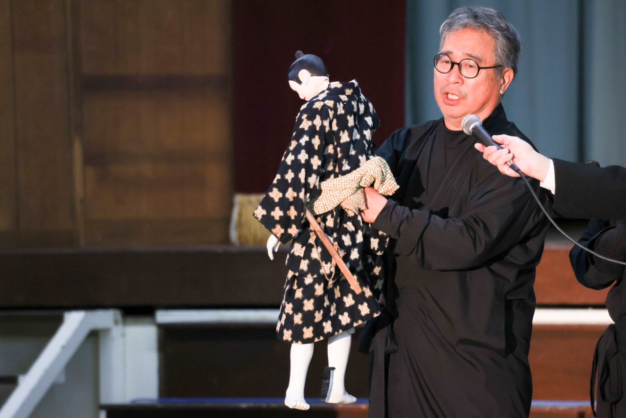 1人は人形の頭(かしら)と右手、1人は足、1人は左手と担当が分かれています。