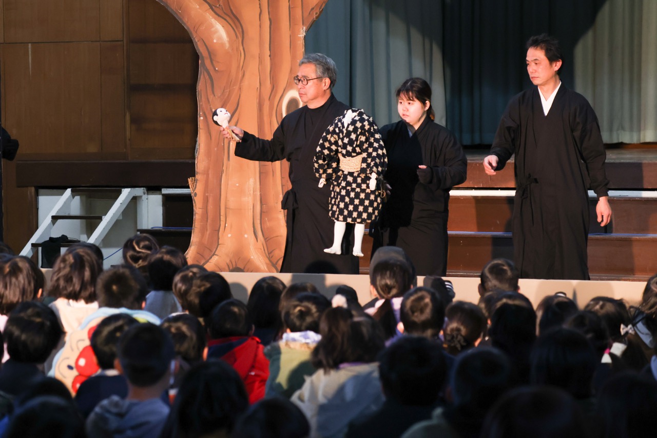 藤が尾小学校で人形浄瑠璃「モチモチの木」公演やってた!