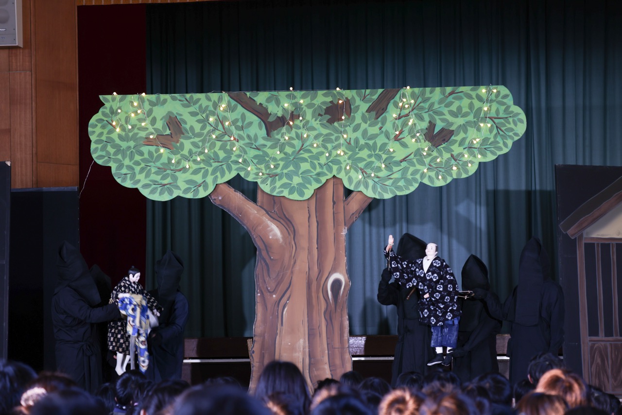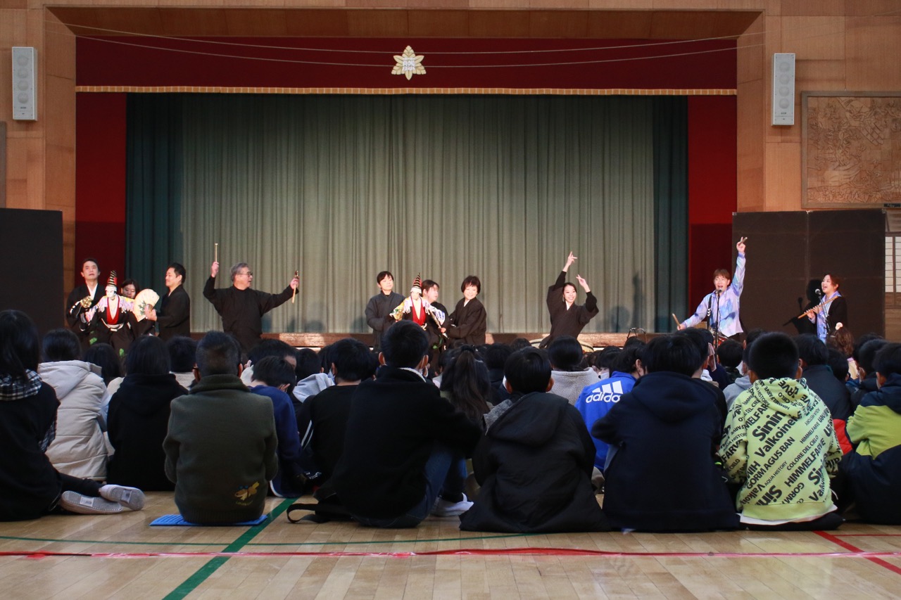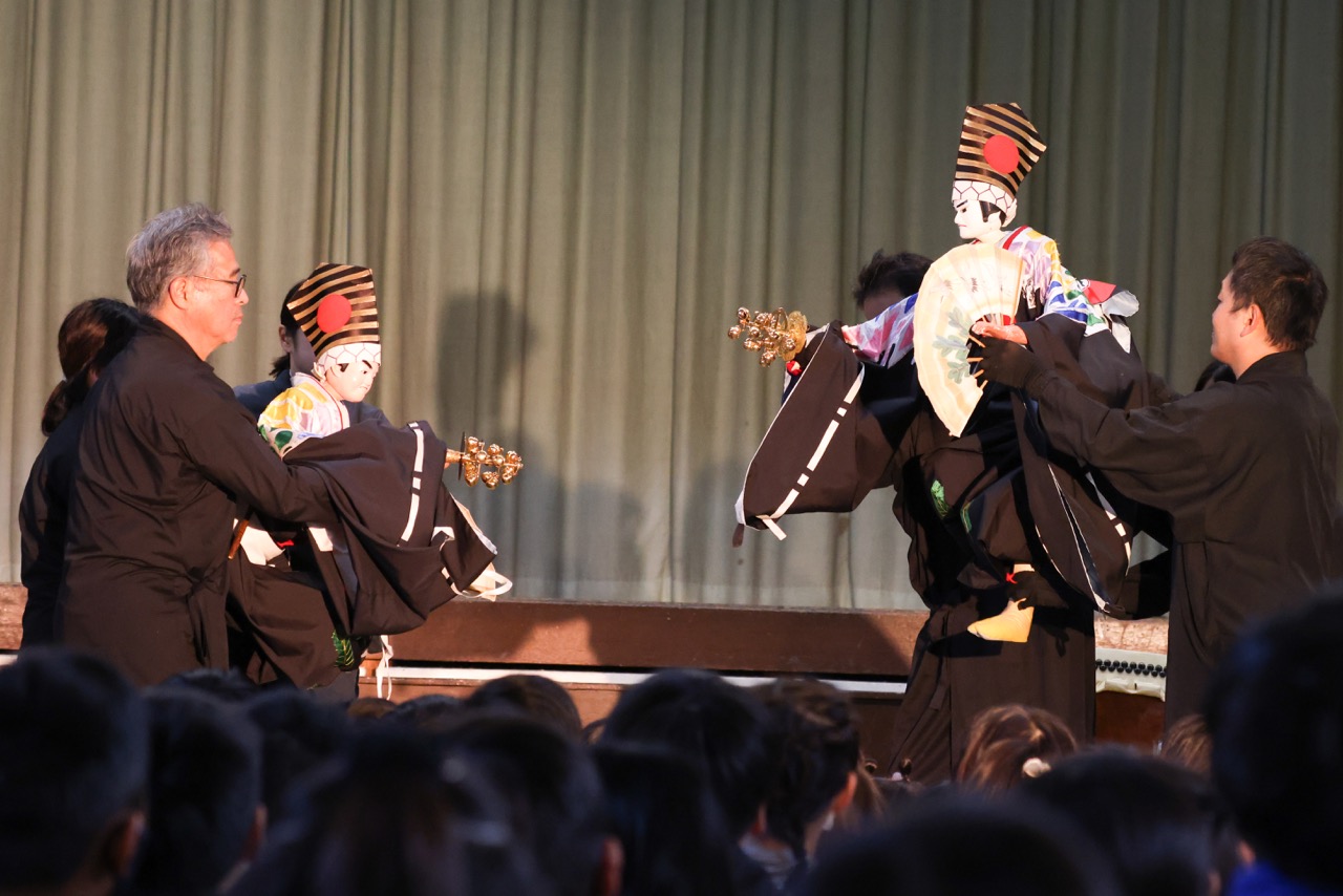 大阪難波の国立文楽劇場に行けば観られますが、なかなか行く機会は少ないと思いますので学校の体育館で鑑賞出来たのは、子どもたちにすごく刺激になったのではないでしょうか。