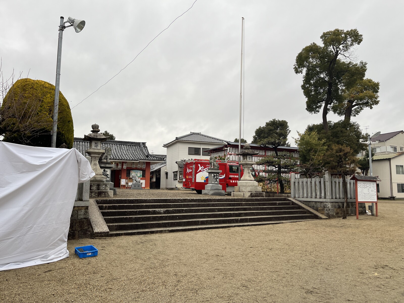 拝殿の方には、消防車も1台駐車されていました(通常、ここには車両が入ってきませんのでこの風景も中中のリアル)。