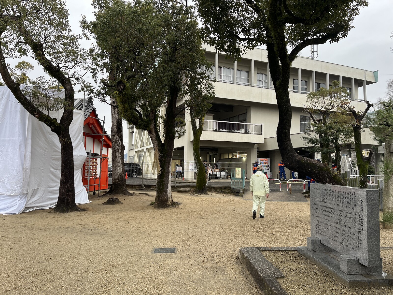 周囲の様子はこんな感じで境内の端っこは白いシートがたくさん。