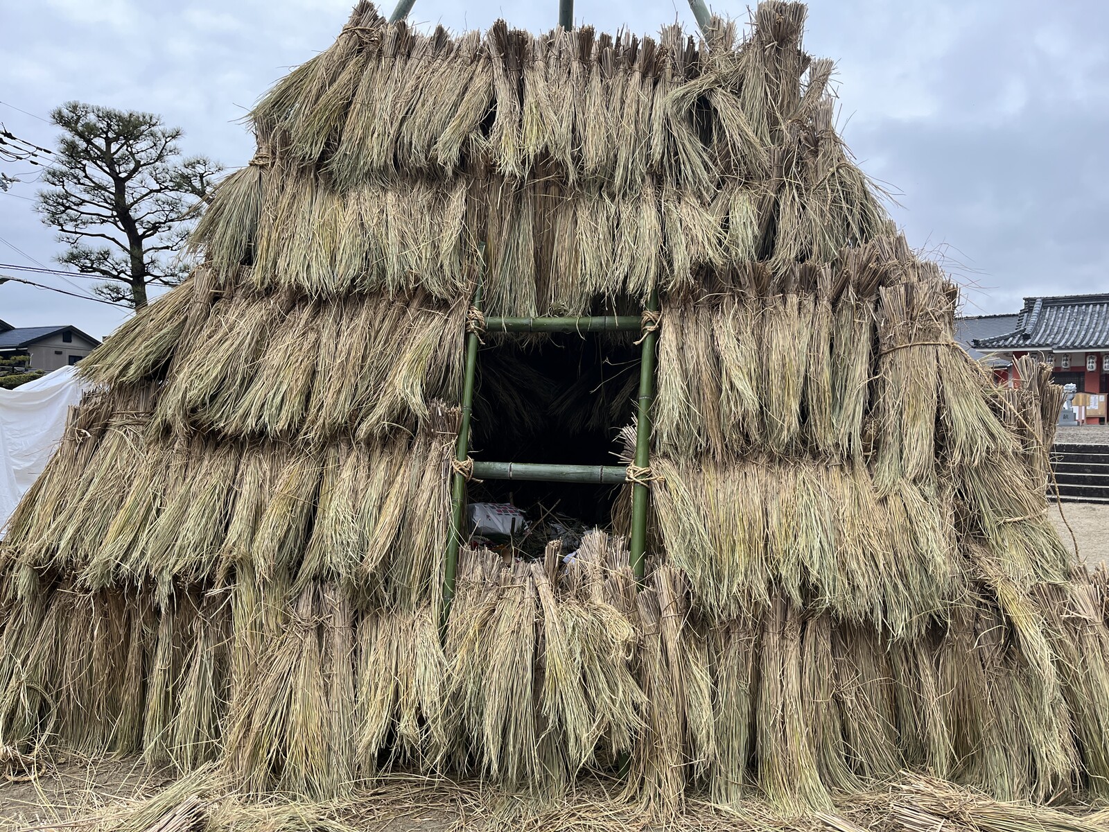 そろそろ、あぁ、これのこと言ってるなとお分かりになられた方も多いかと思いますが、そう!、この私部の住吉神社の境内に登場した構造物は、縄文時代の住居みたいなのではなく、毎年この時期に開催されている私部の大とんどのことでした。