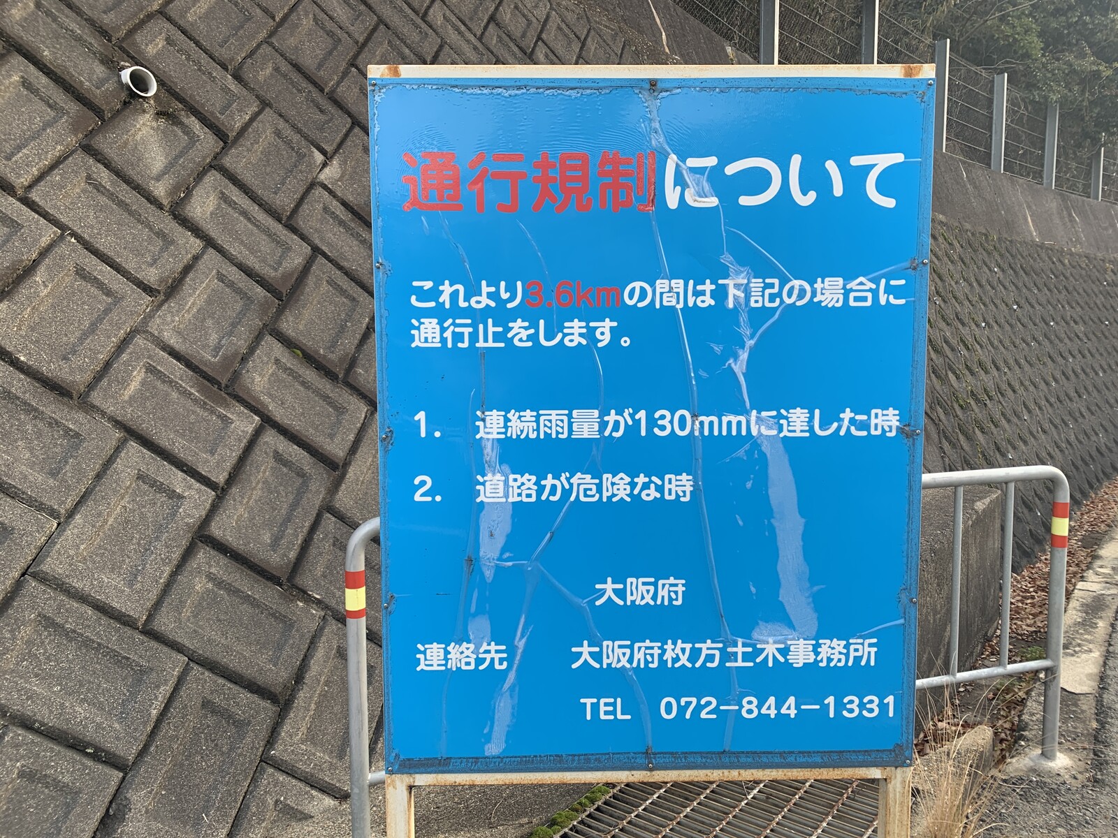 いわゆるこの『磐船街道』のあたりは、路面凍結や積雪などで通行止めになることもあります。