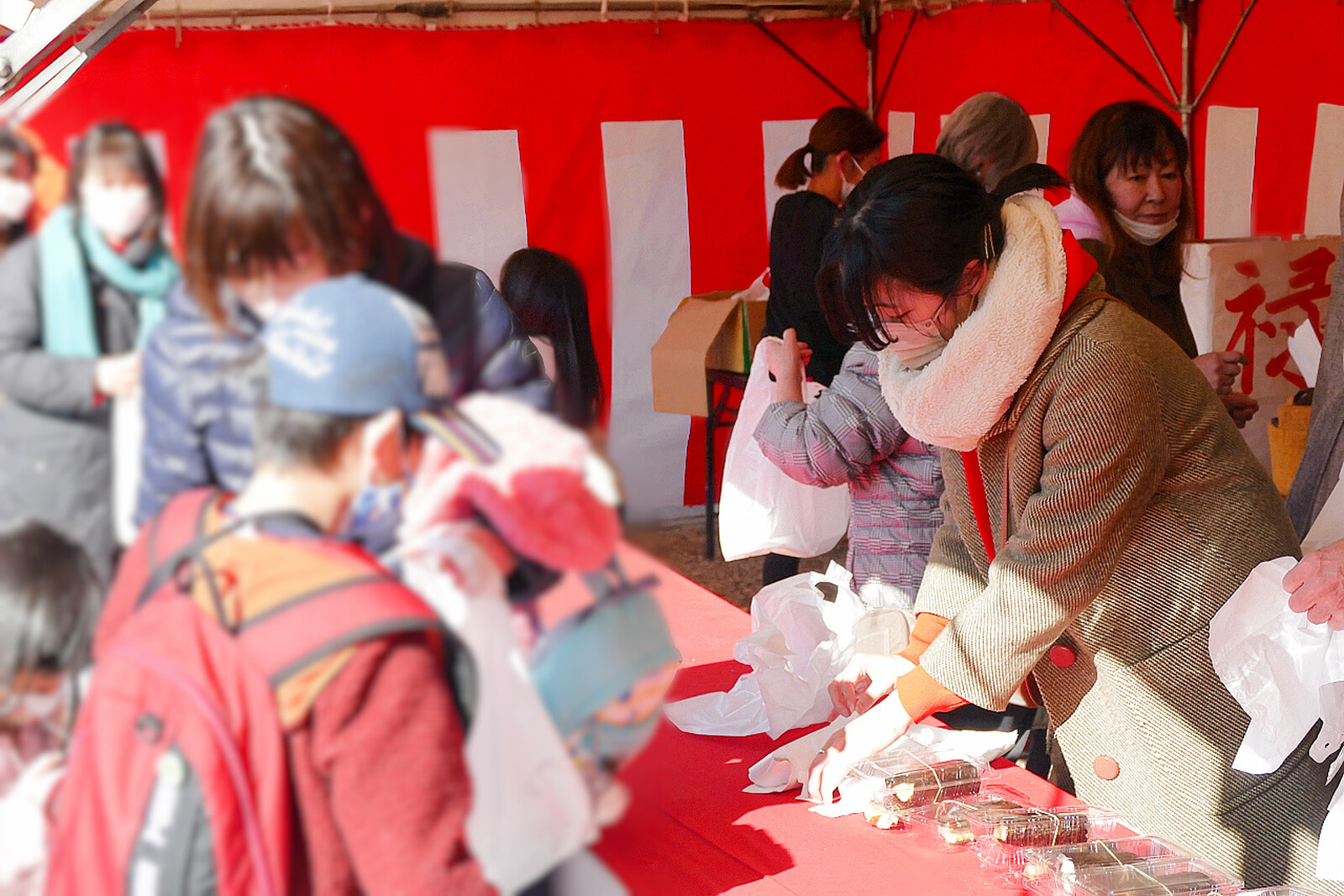 密な状態が長時間続くのを避けるため、豆まき自体は短い時間だけ行われましたが、それでも多くの参拝者が豆まきを楽しんでいました。