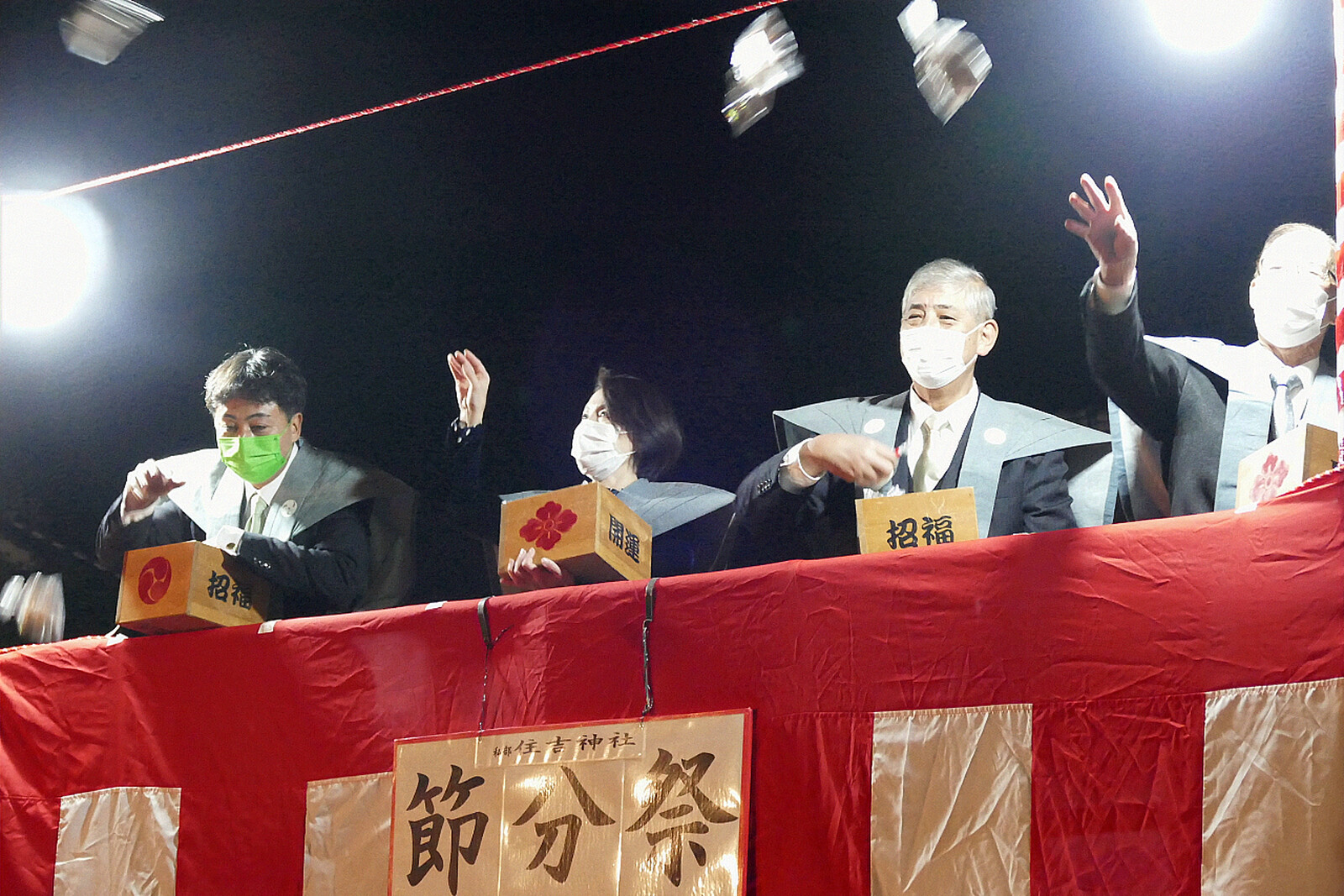 住吉神社の豆まきは、午後7時、午後7時20分、午後7時40分の計3回行われました。