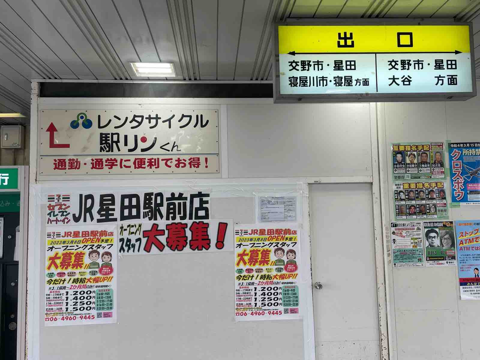 星田駅の改札を出たところの真正面に大きくお知らせが出ています。