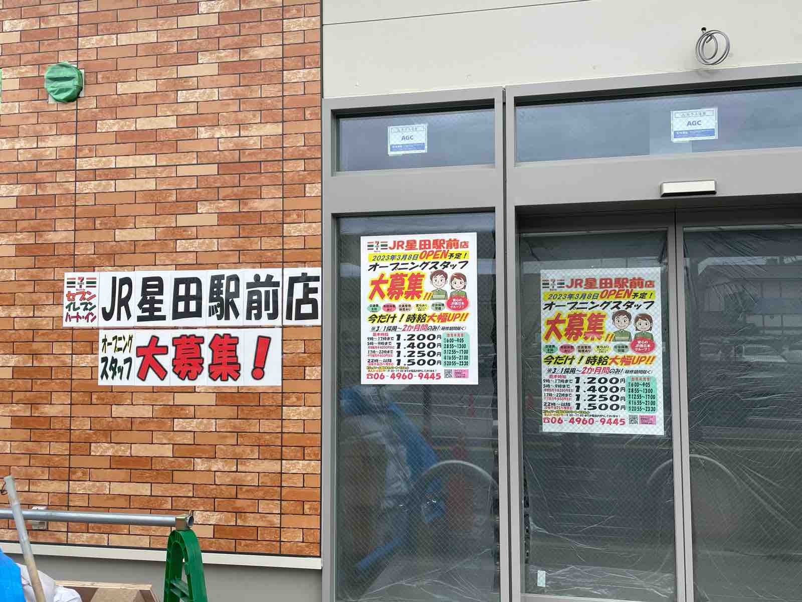 「2023年3月8日OPEN予定!」となっているので、セブンイレブン ハートインJR星田駅前店の新規オープンはもうすぐという状況です。