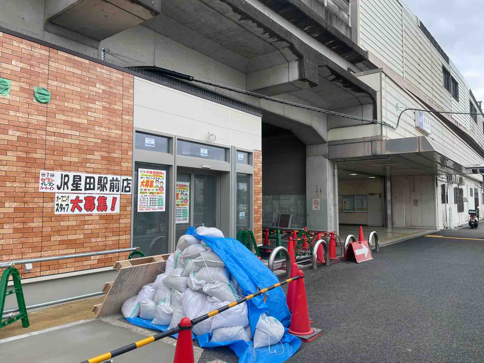 東にもファミリーマート星田駅東店もあり便利な星田駅前ですが、JR高架下で改札を出たところに新たなコンビニが開店するので便利になりますね。