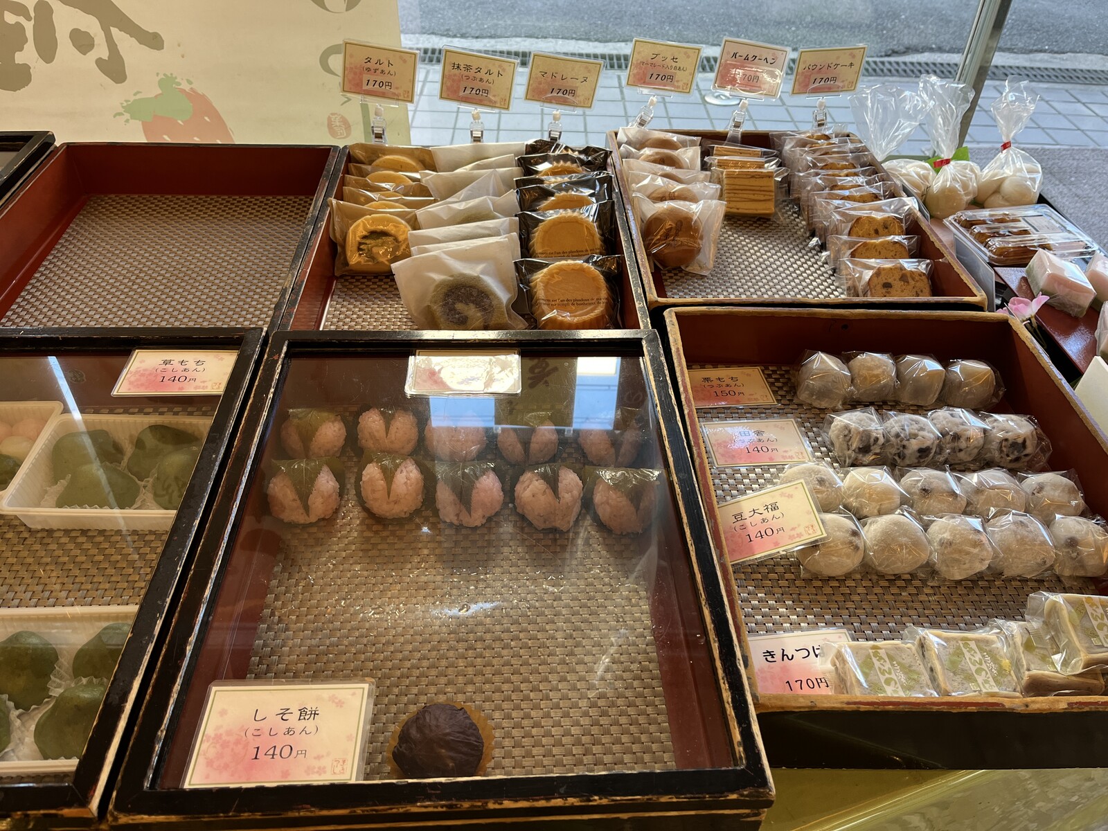 お店の奥が和菓子を作るところになっているそうで、作りたての和菓子が並んでいました。