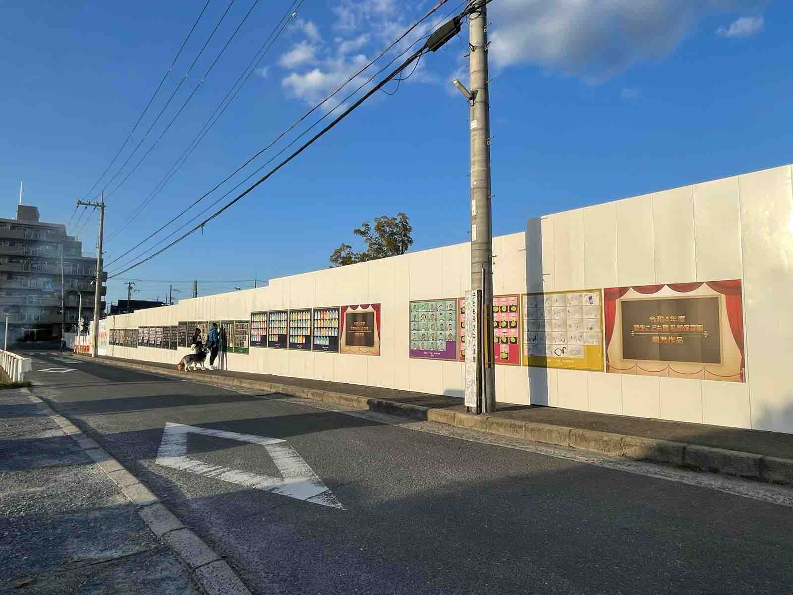 旧交野小学校跡地の工事現場にほっこりする作品が展示中!