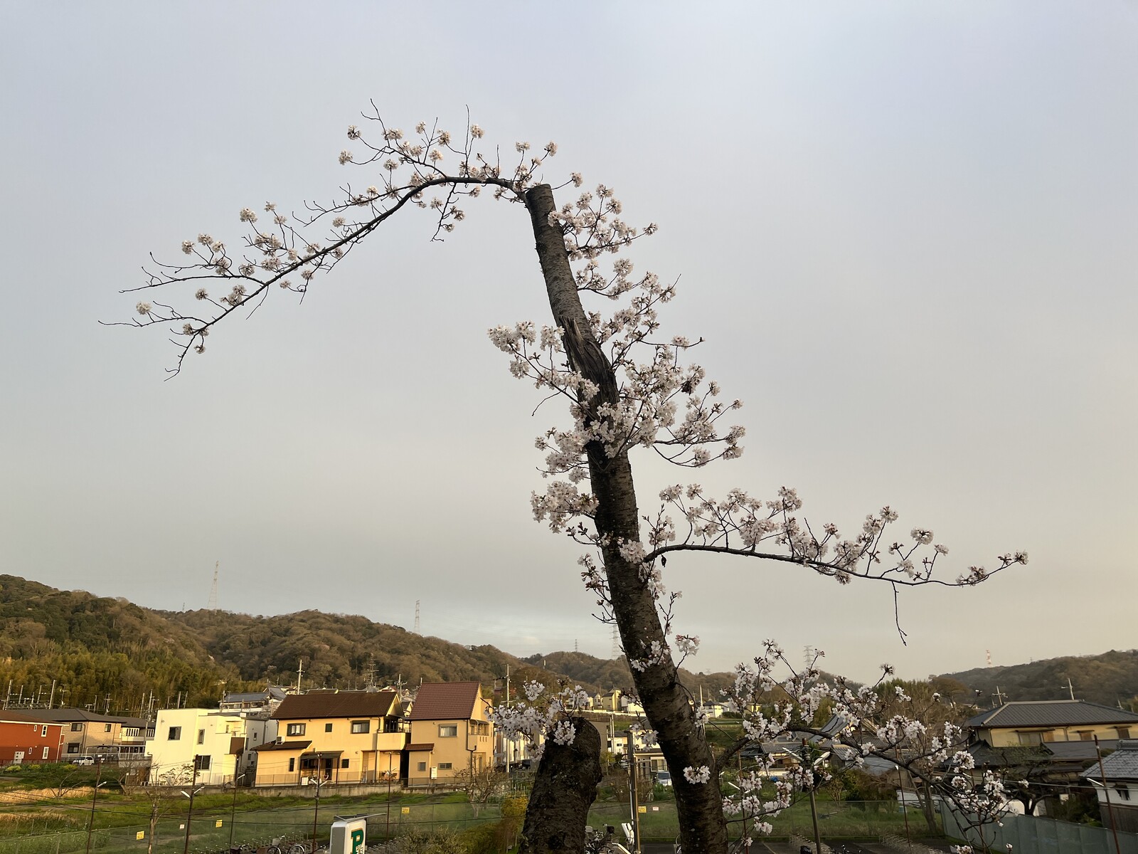 メインだったぽい幹もなくなっていて、分岐したところとその先っぽの枝1本で桜が満開になっています。