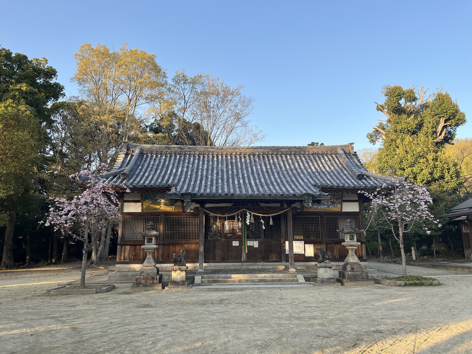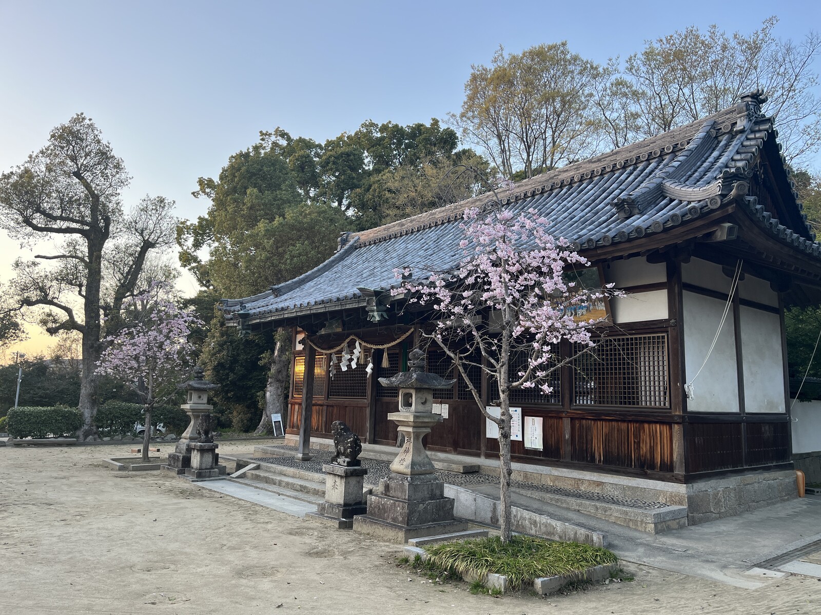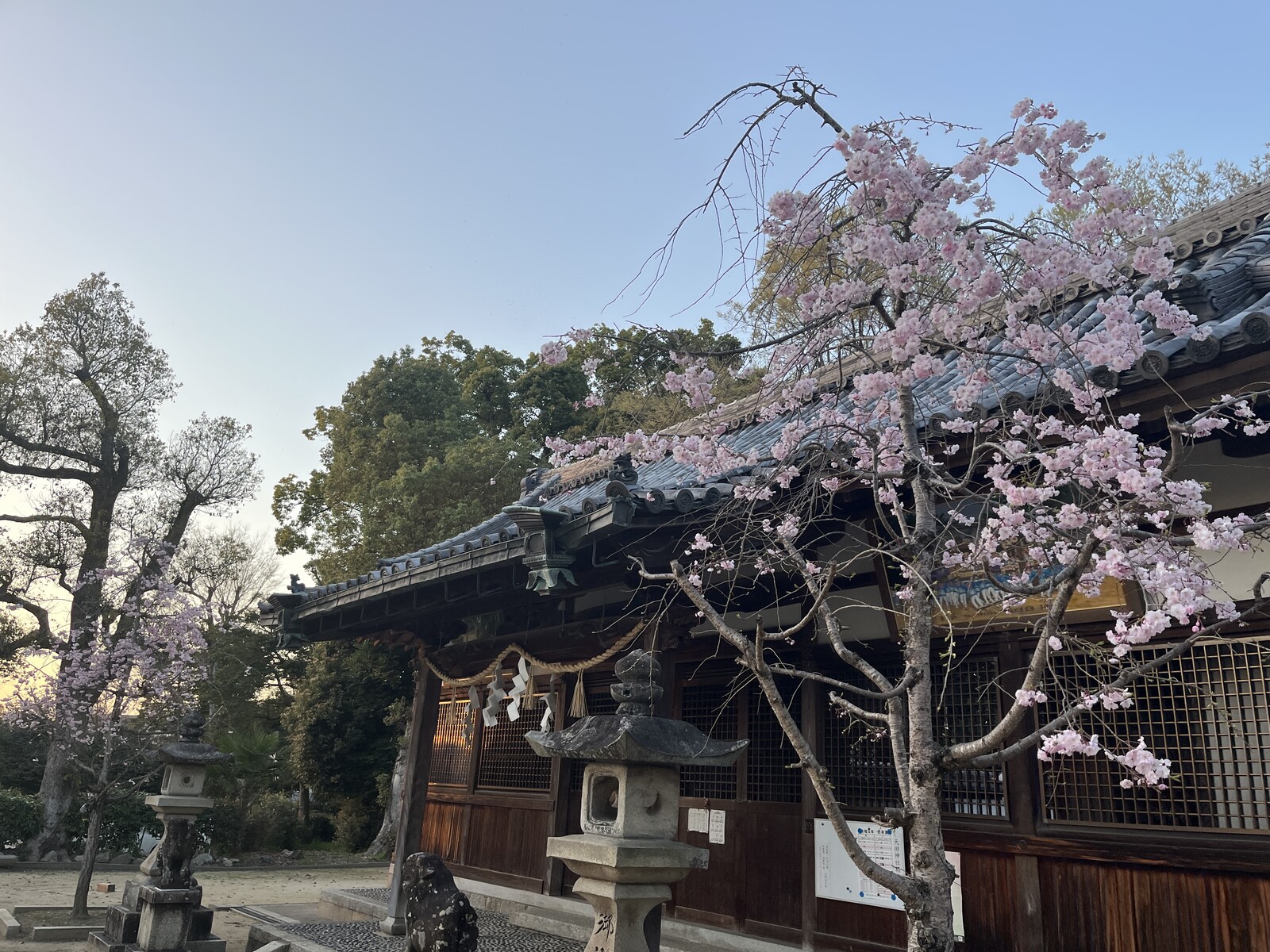 天田神社のところの左右対称な二本桜。若い木だけど凛々しい感じ【交野の桜スポット】