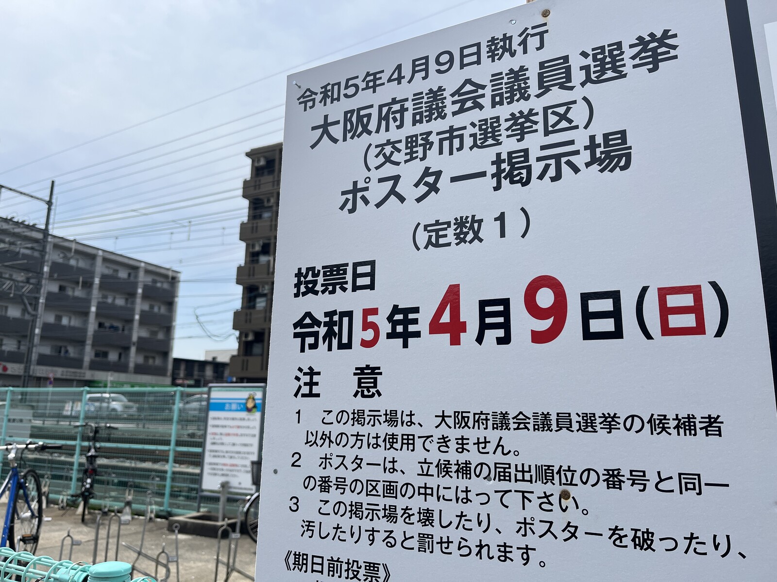 府議会議員選挙2023、交野市は定数1名に対して2名が立候補