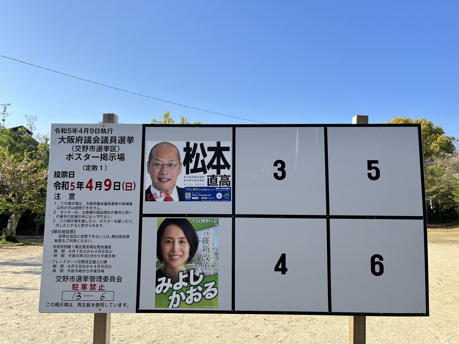 交野市からは、定数1名に対して、下記2名が立候補。