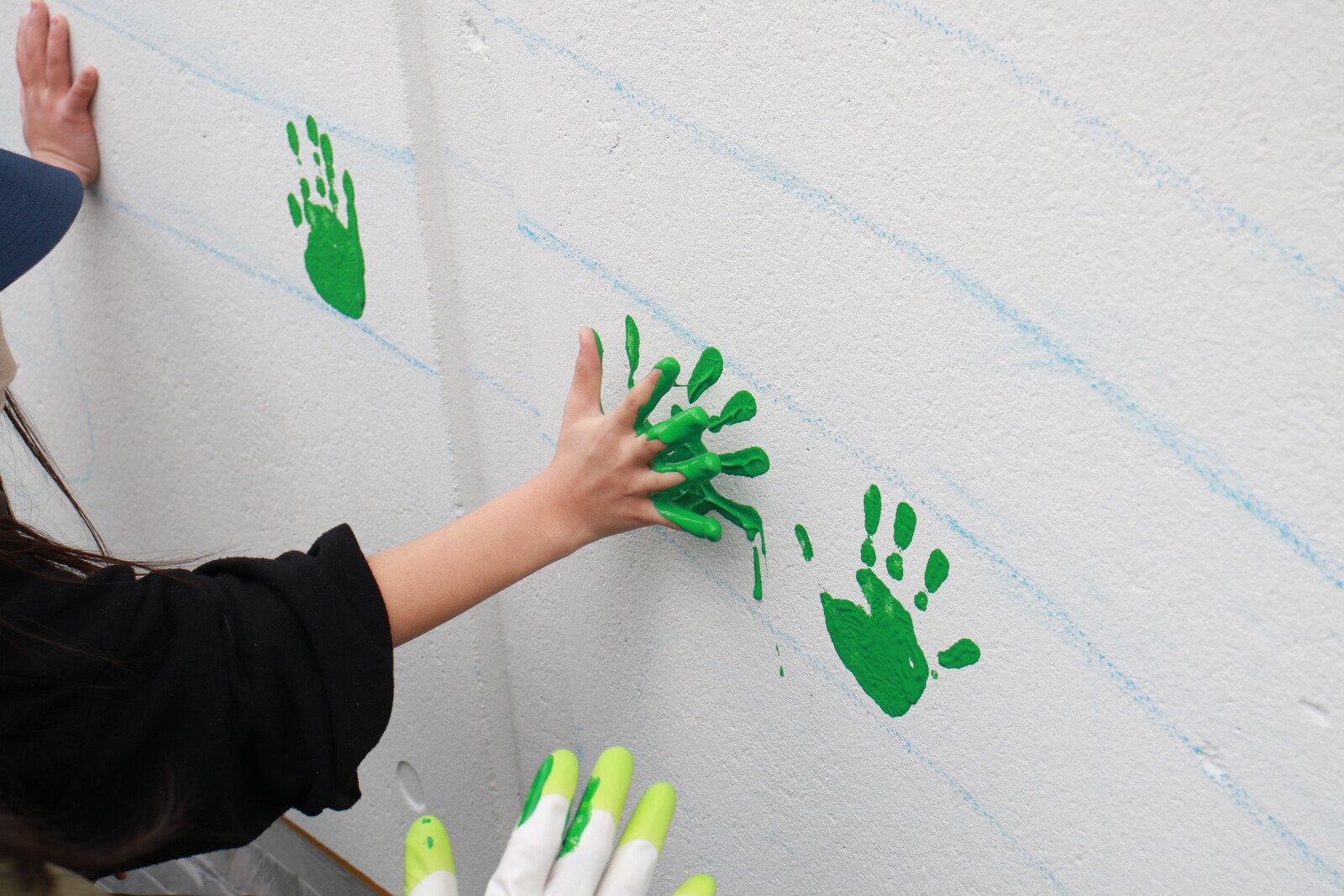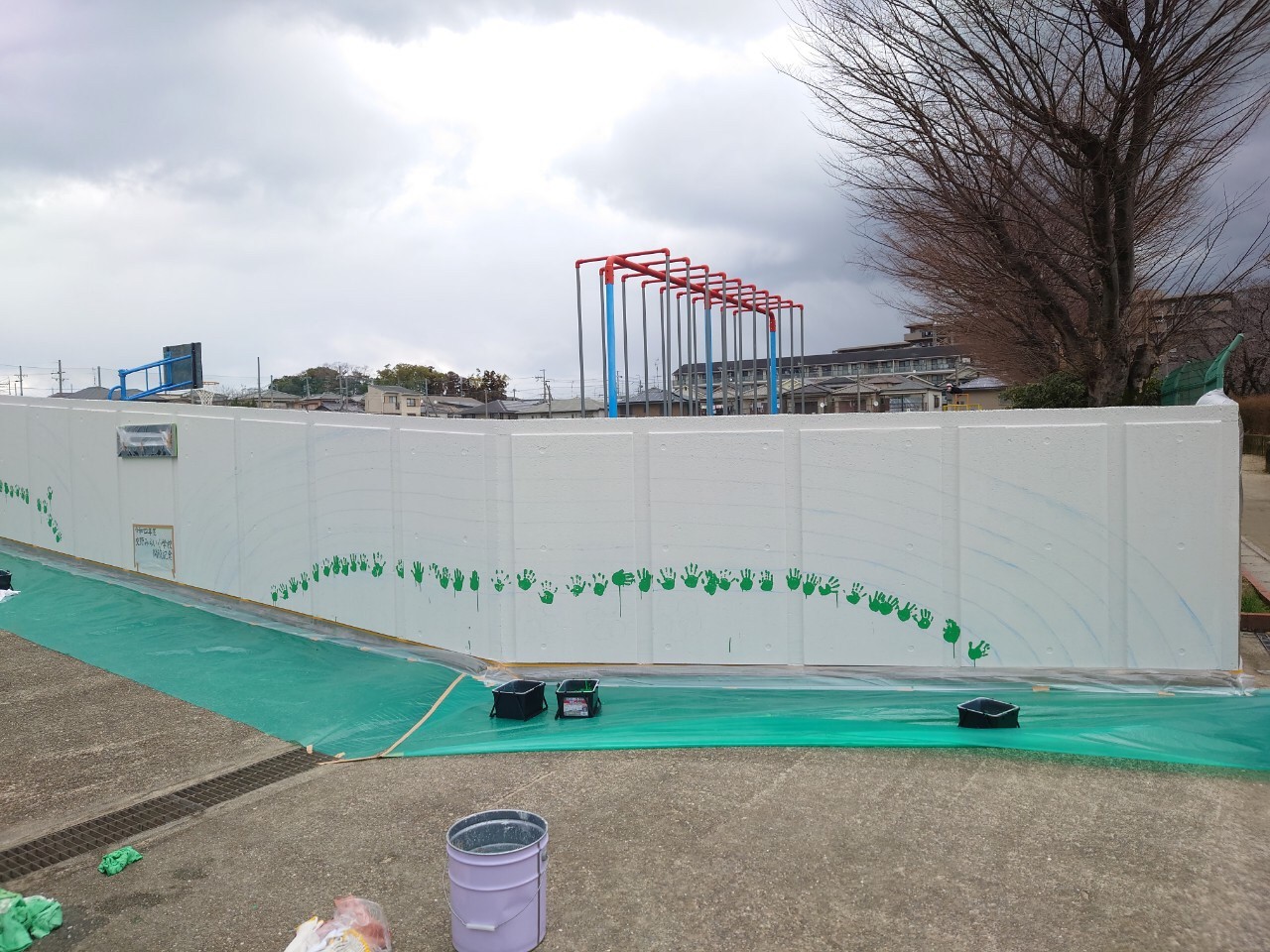 この日は、2月の少し肌寒い日でしたので、ペンキに手をつけるとヒヤッとしたのはないでしょうか。