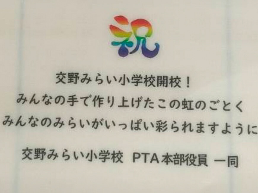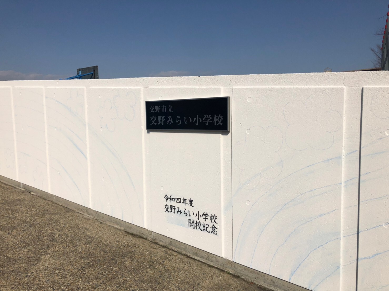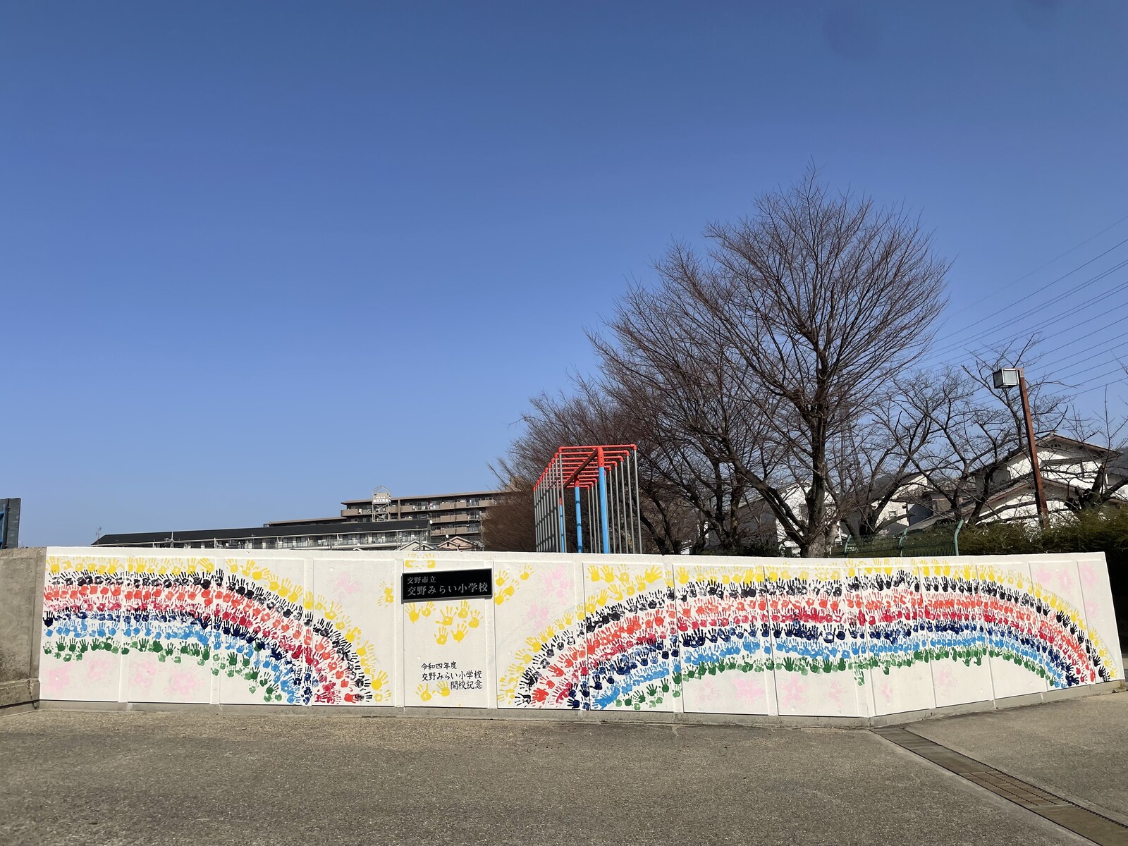 7色の虹が登場!交野みらい小学校(旧 長宝寺小学校)の正門の壁のところ