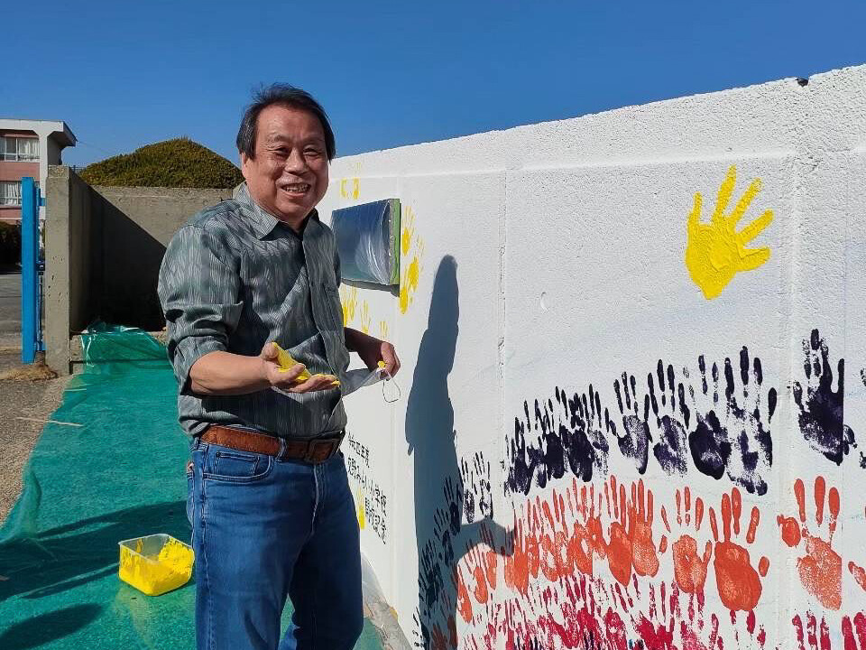 ここから、各学年の子どもたちが手形を押していく予定です。