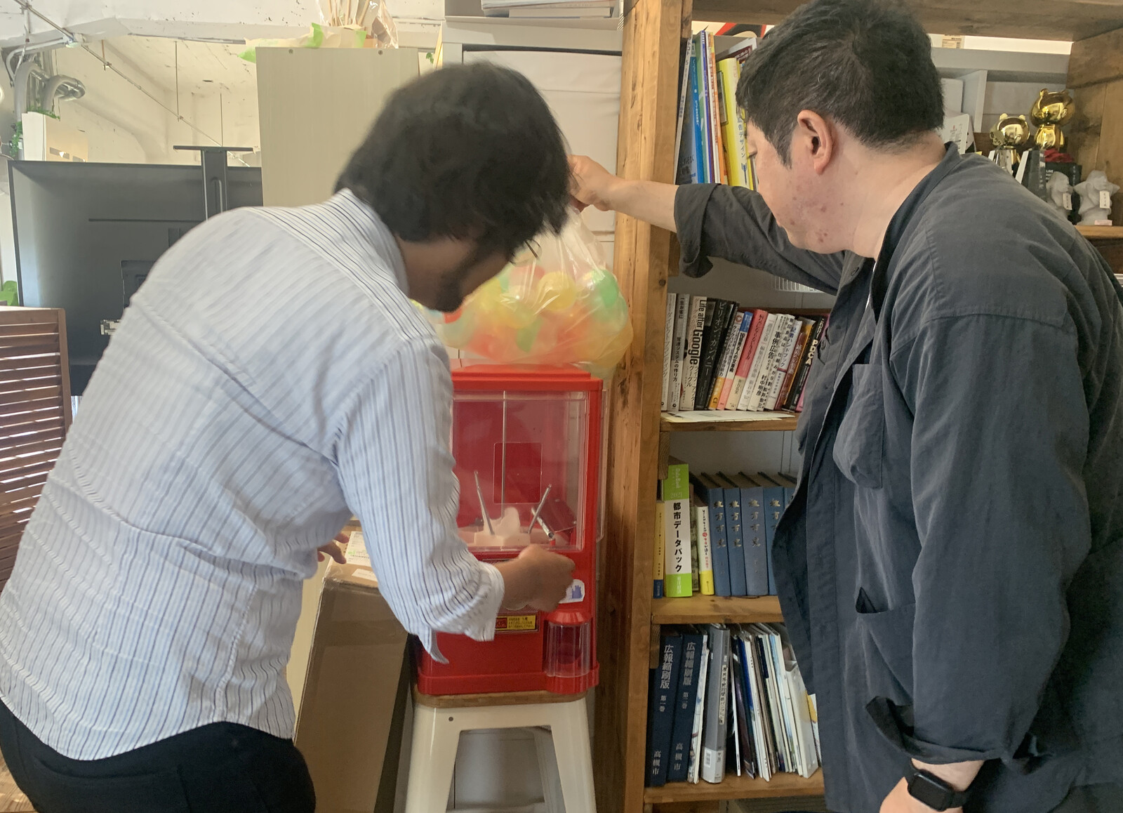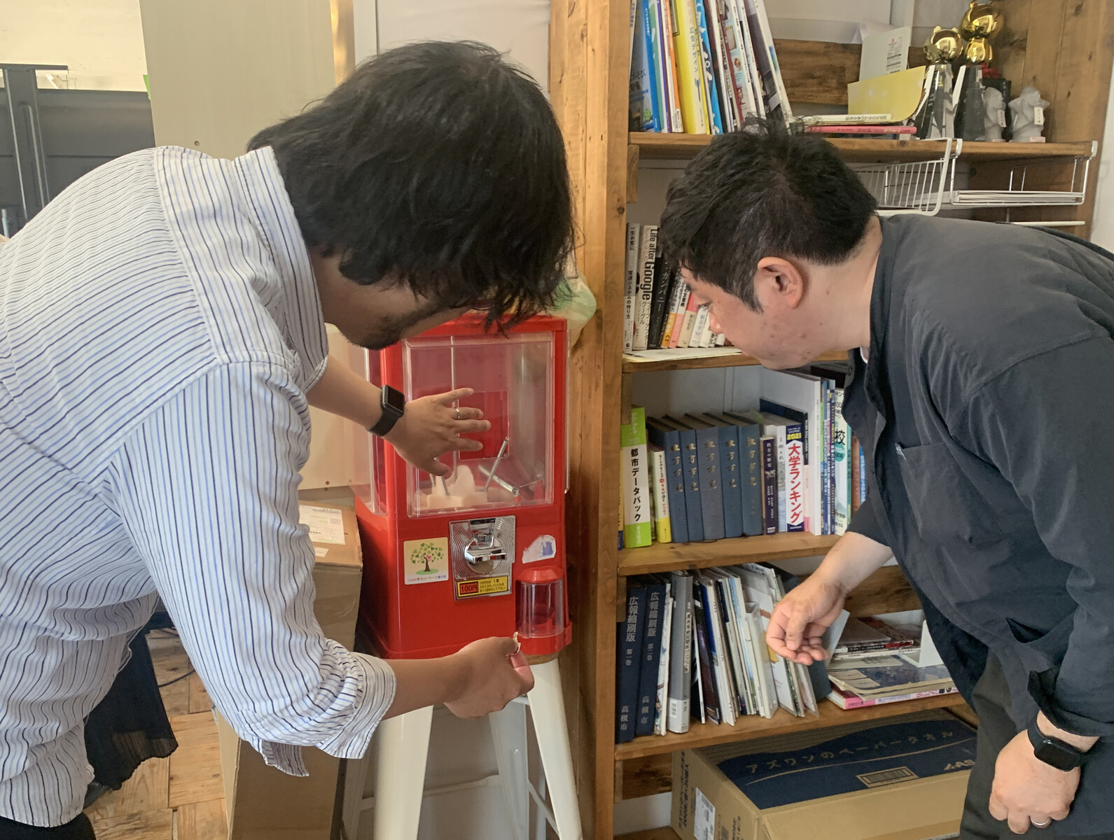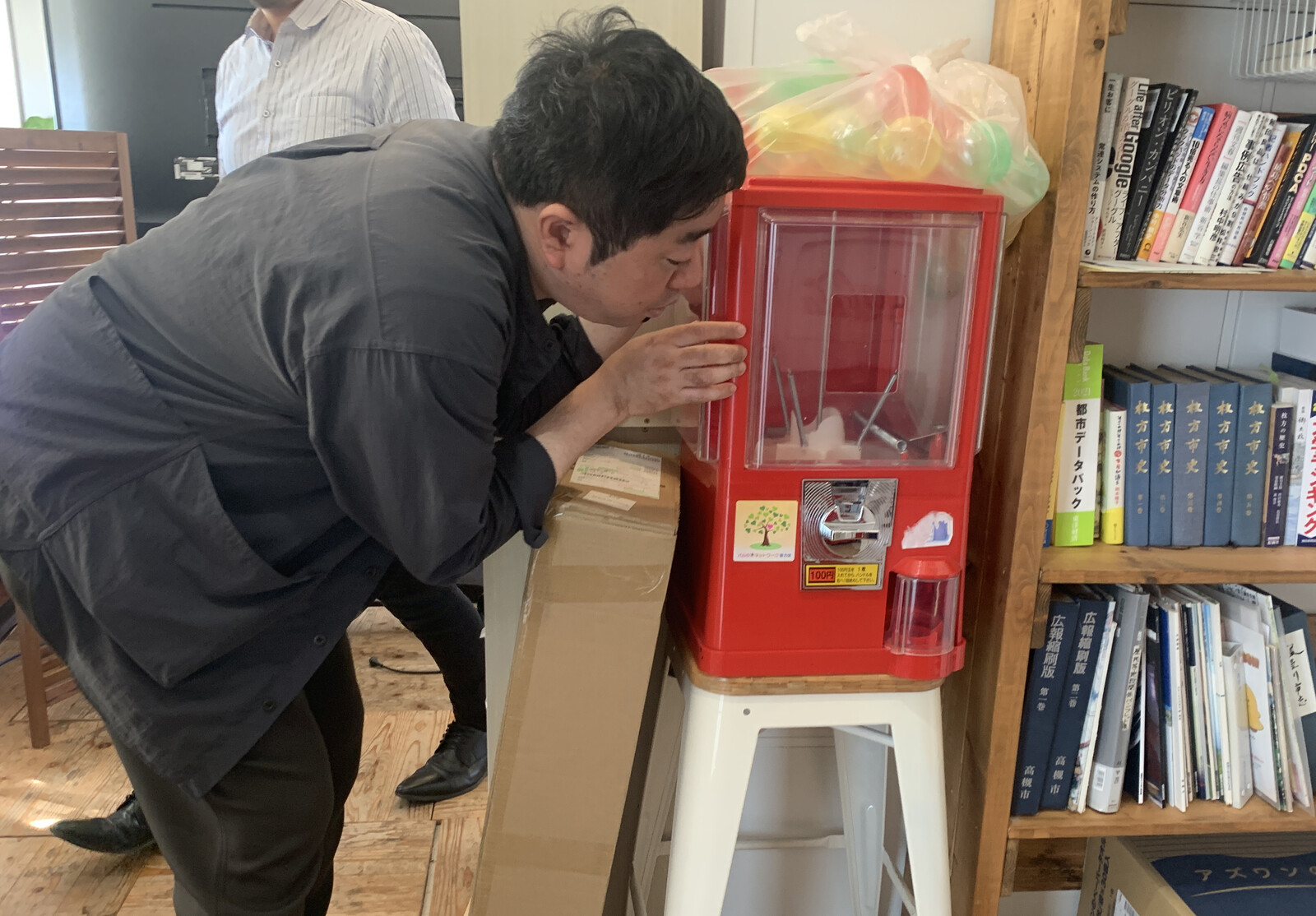 通りゆく人々に「お!交野タイムズの『交野ガチャガチャ』やん!」