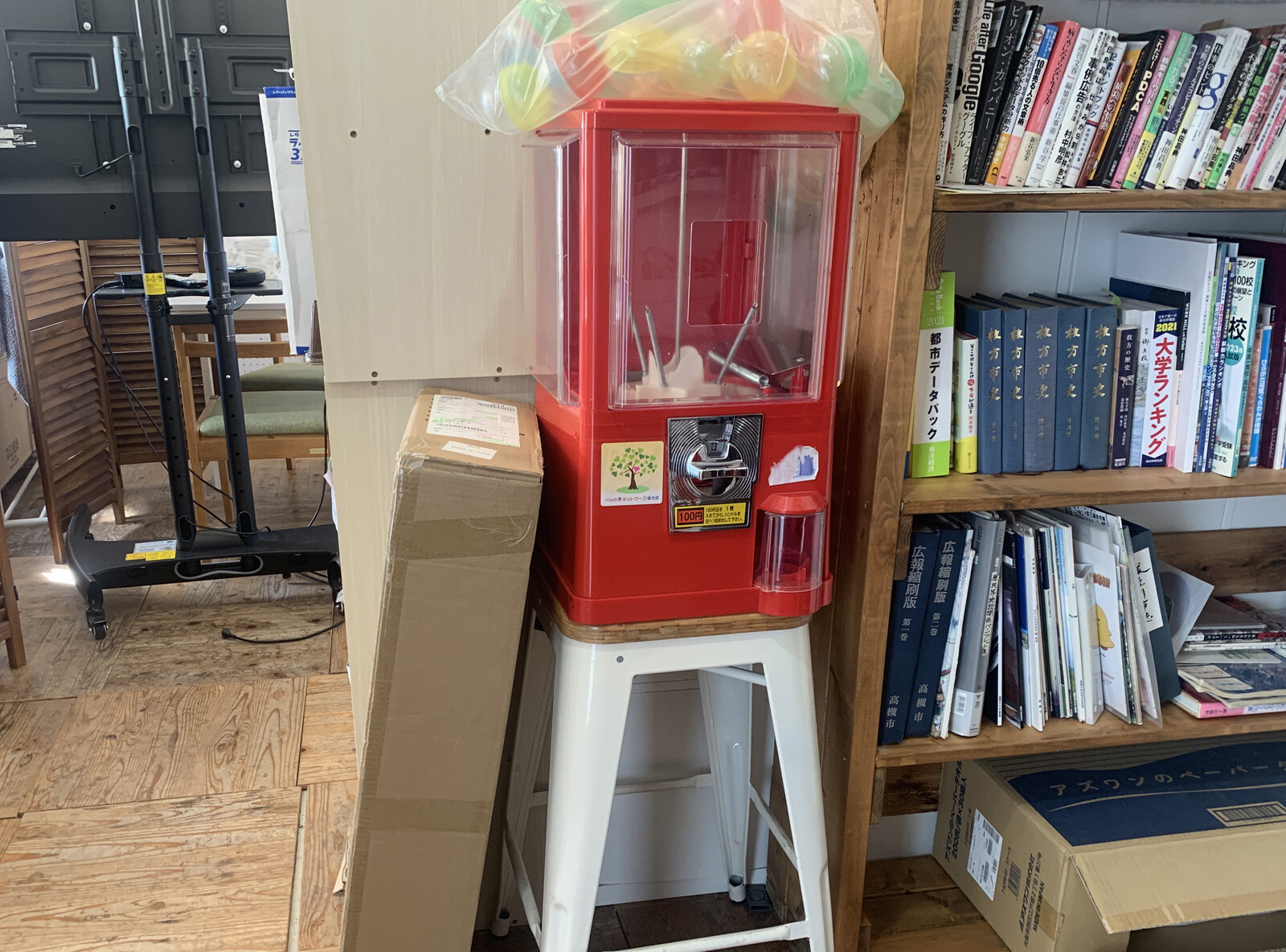 というわけで、どどーんと、交野タイムズ編集部(私市駅前たねtane内)に設置!