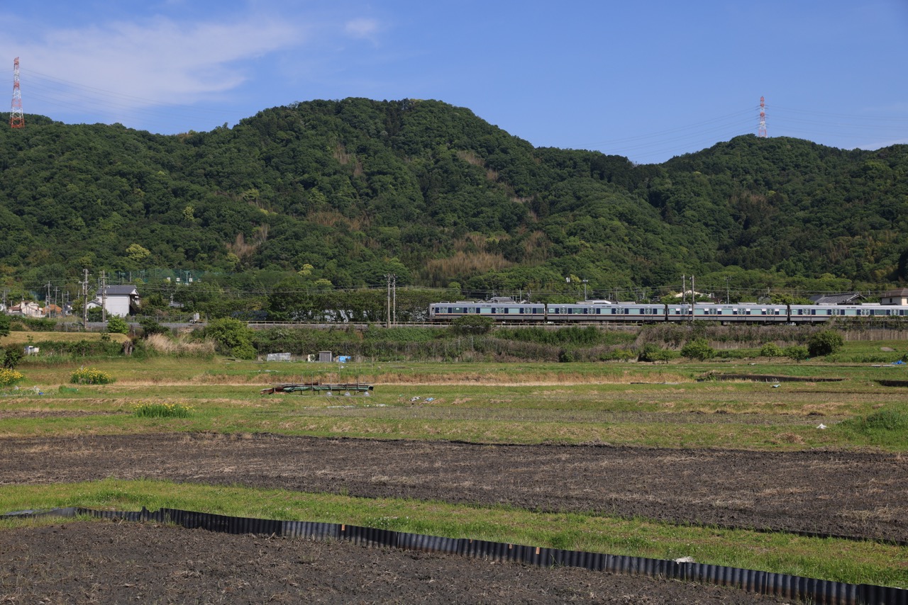 今回は、運よくJRの通ってくれて初夏の山とJR学研都市線が撮れました。