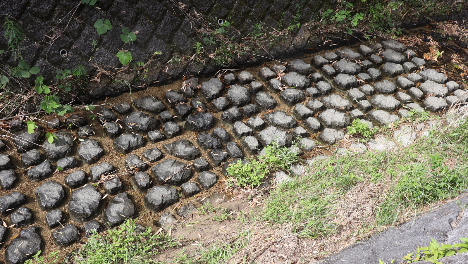 流れを調整するために設けられたものなのか、ちょこっと遊ぶためのものなのか、その施工理由は確認できておりませんが、このように、川をお散歩するのにはちょうどいい石でした。