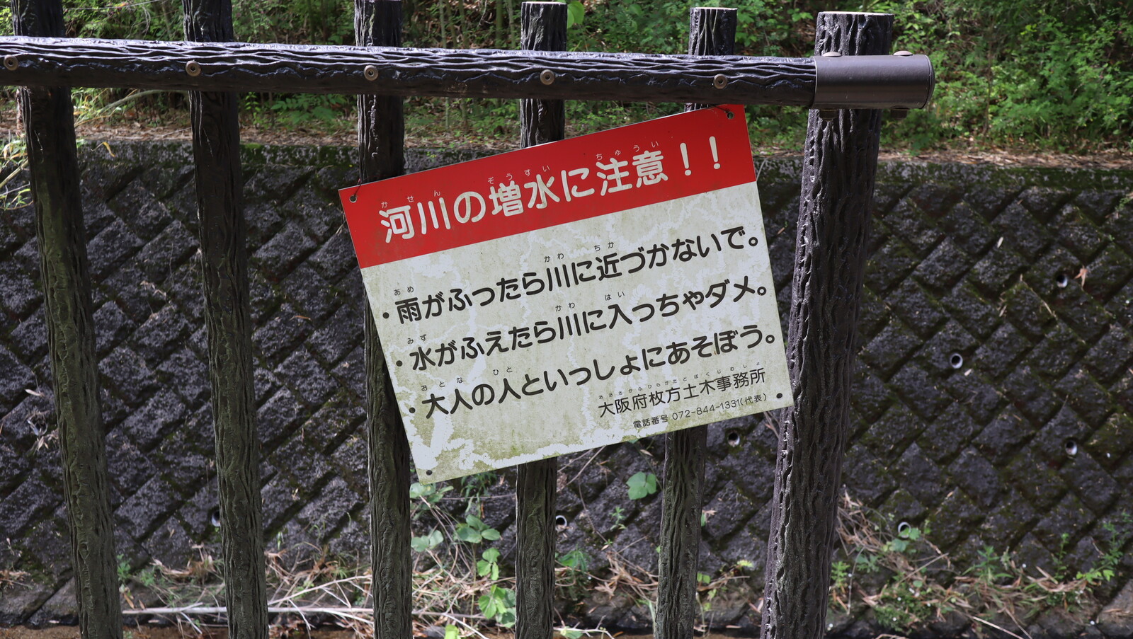 注意書きがありましたが、危険な印象はなかったのと、お菊@交野タイムズ、大人なので、川に降りてみることに。