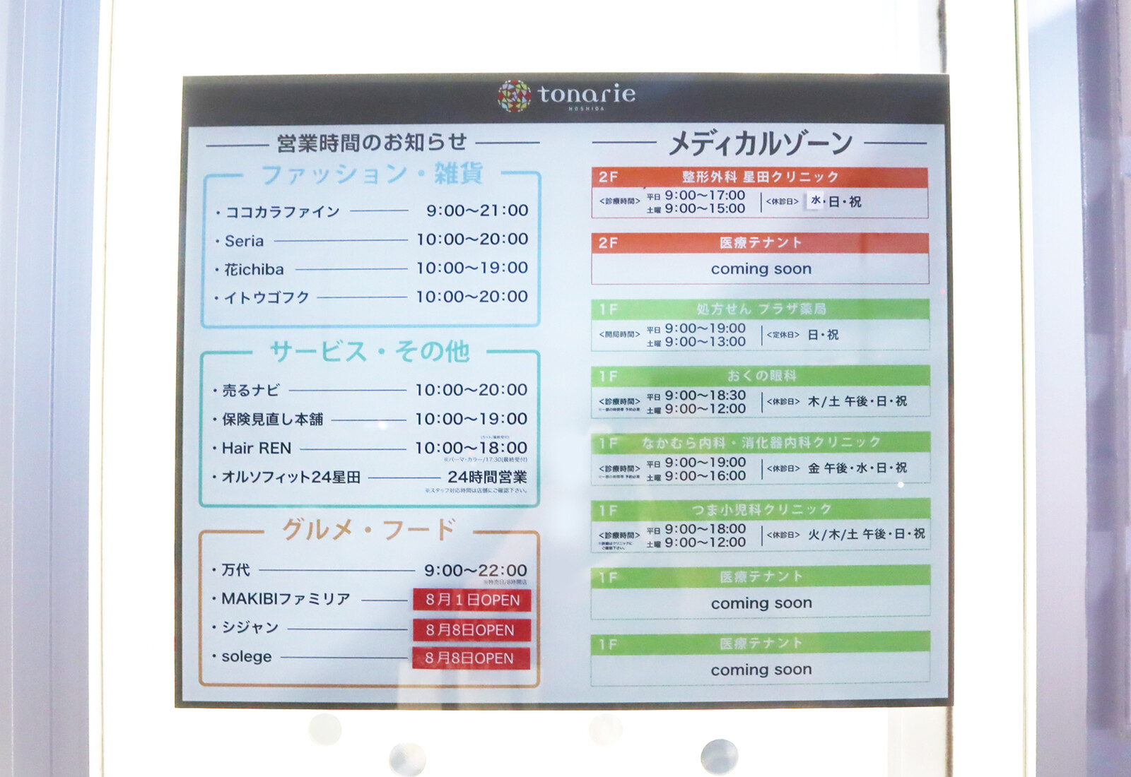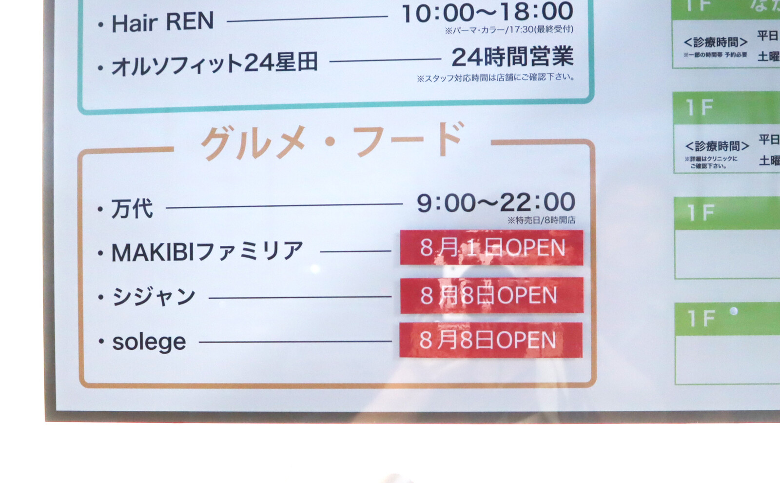 トナリエ星田、ピザ窯もある「MAKIBIファミリア」8月1日、シジャン(韓国料理)、solege(ジェラート)は8月8日オープン予定!