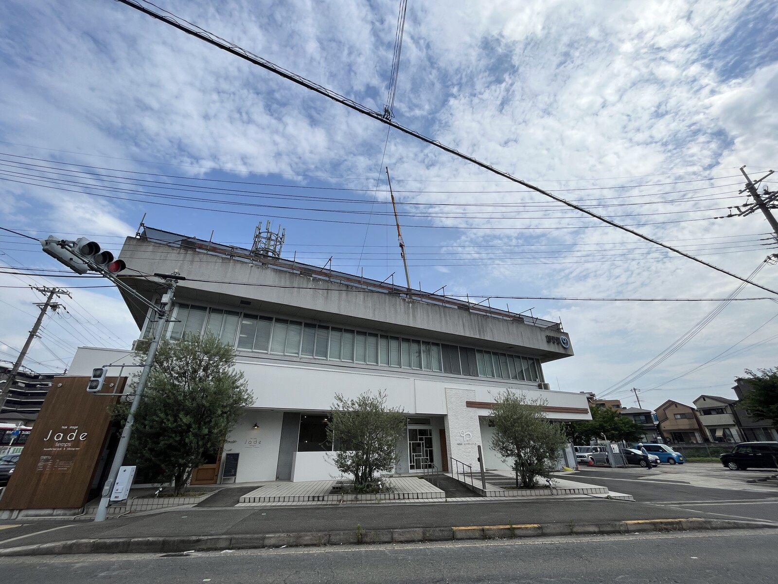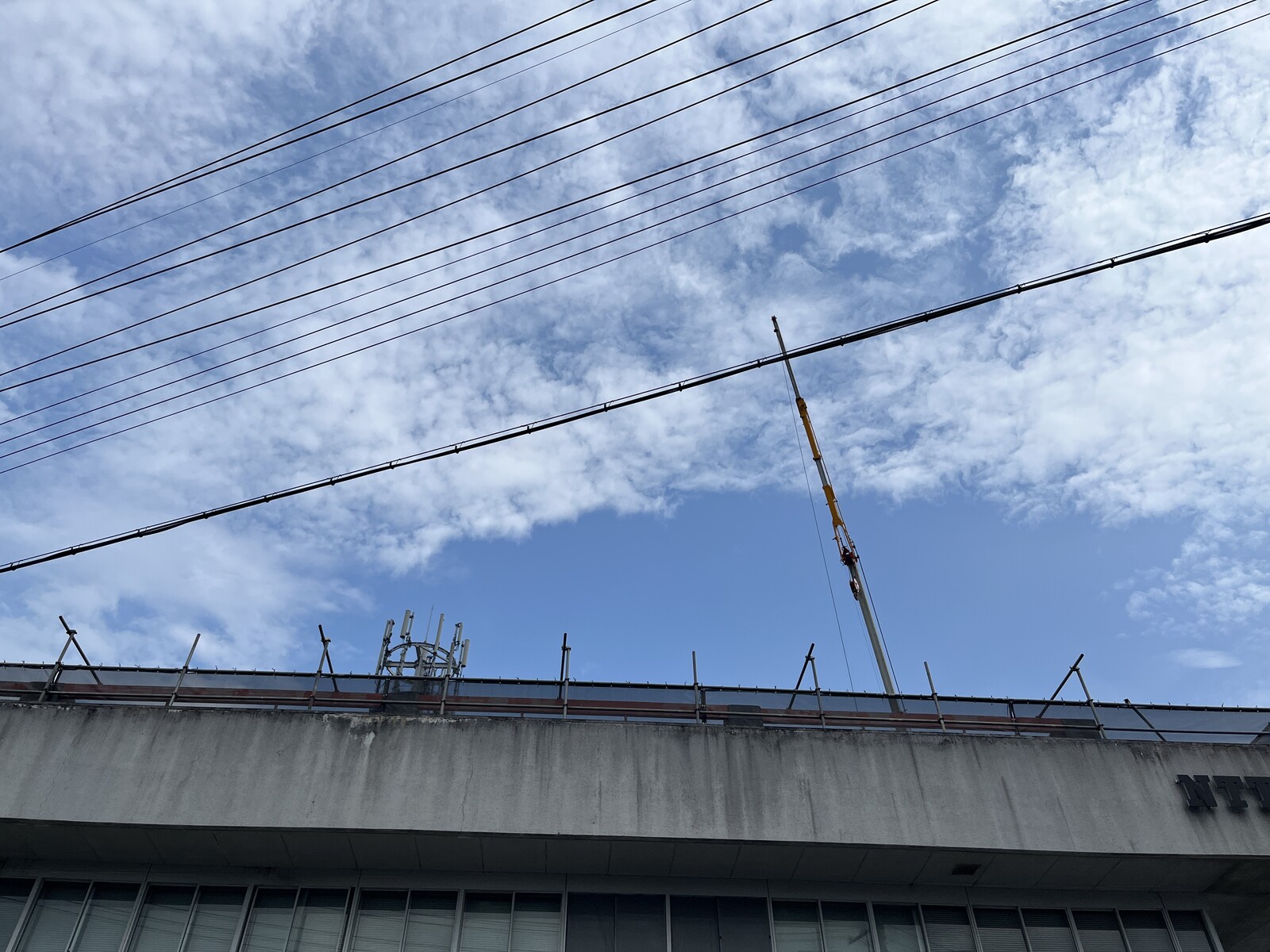 ガストの前にあるNTT西日本の建物(GoogleマップだとNTT西日本 交野電話交換所と出てました)のところに大きなクレーンが1台出現。