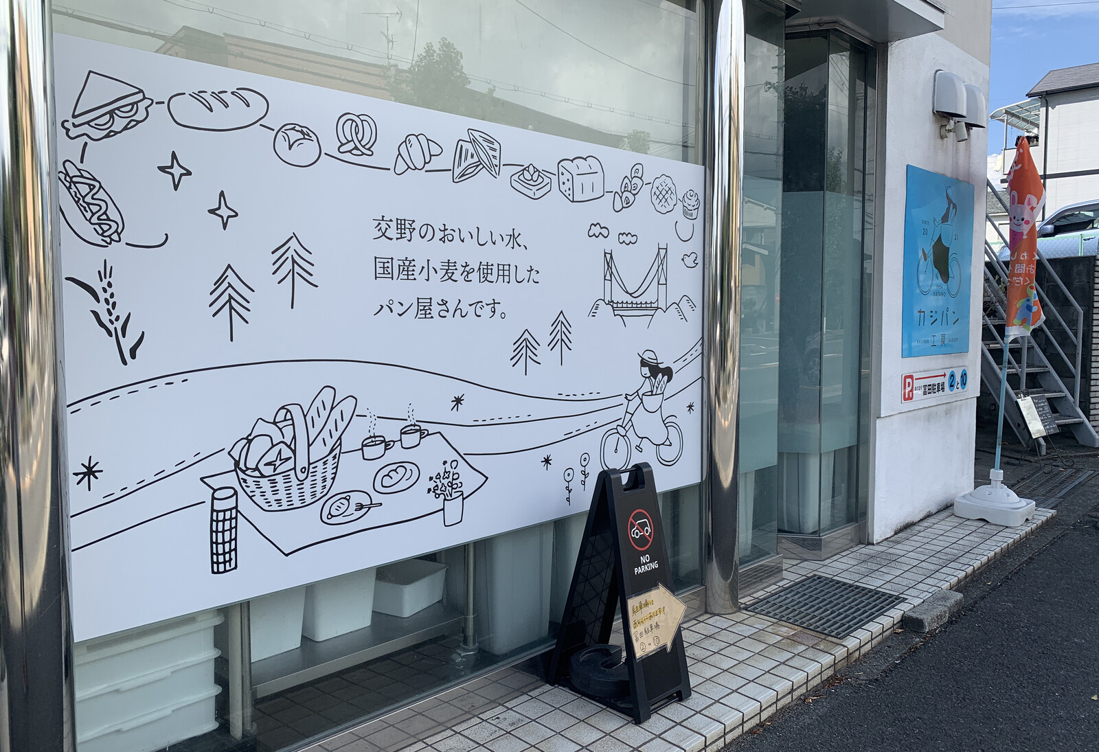 店舗の右手には、パンがいっぱいのイラスト看板が。