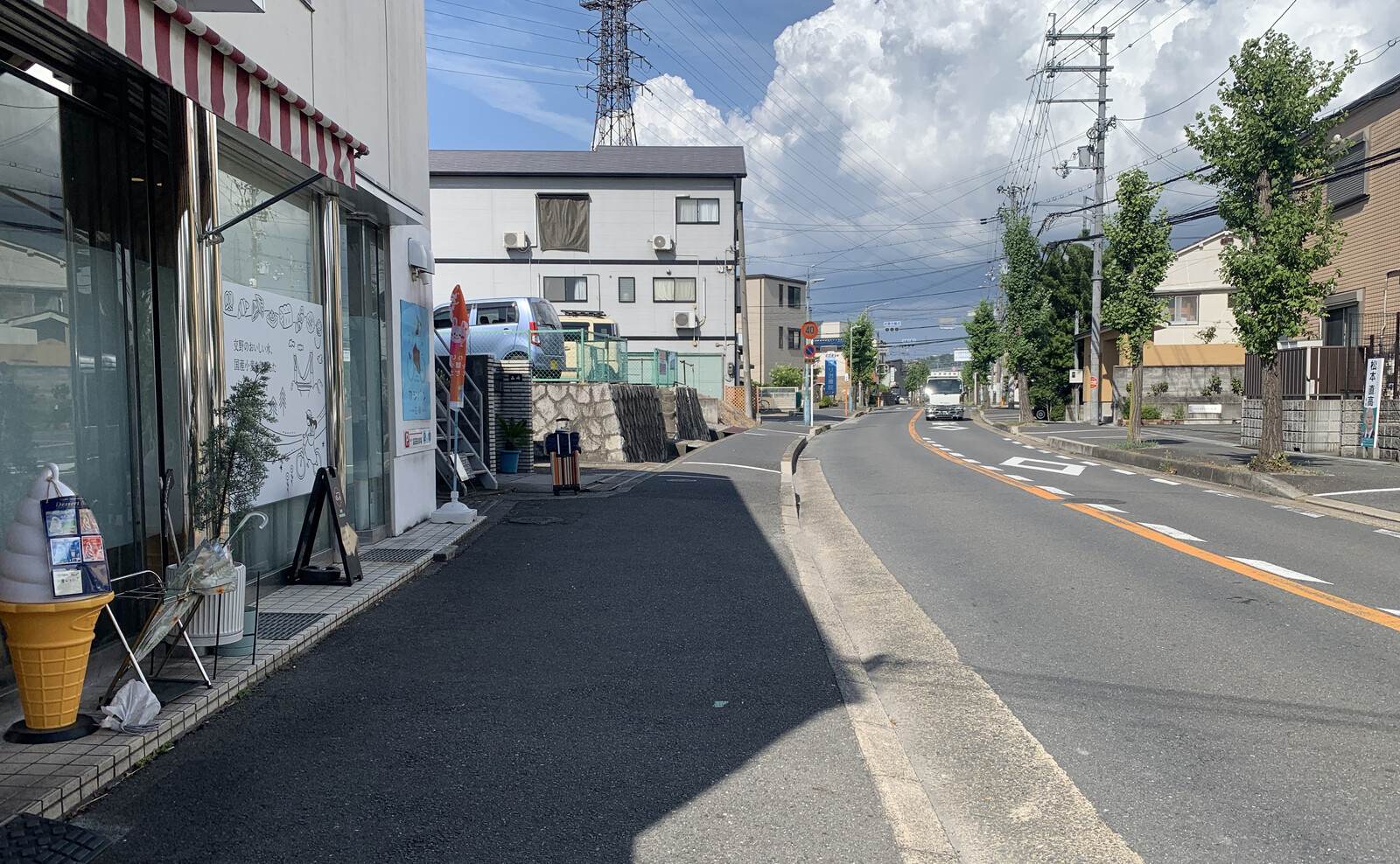 向かって右方向に行けば「にこりcafe」や「S cafe」があります。