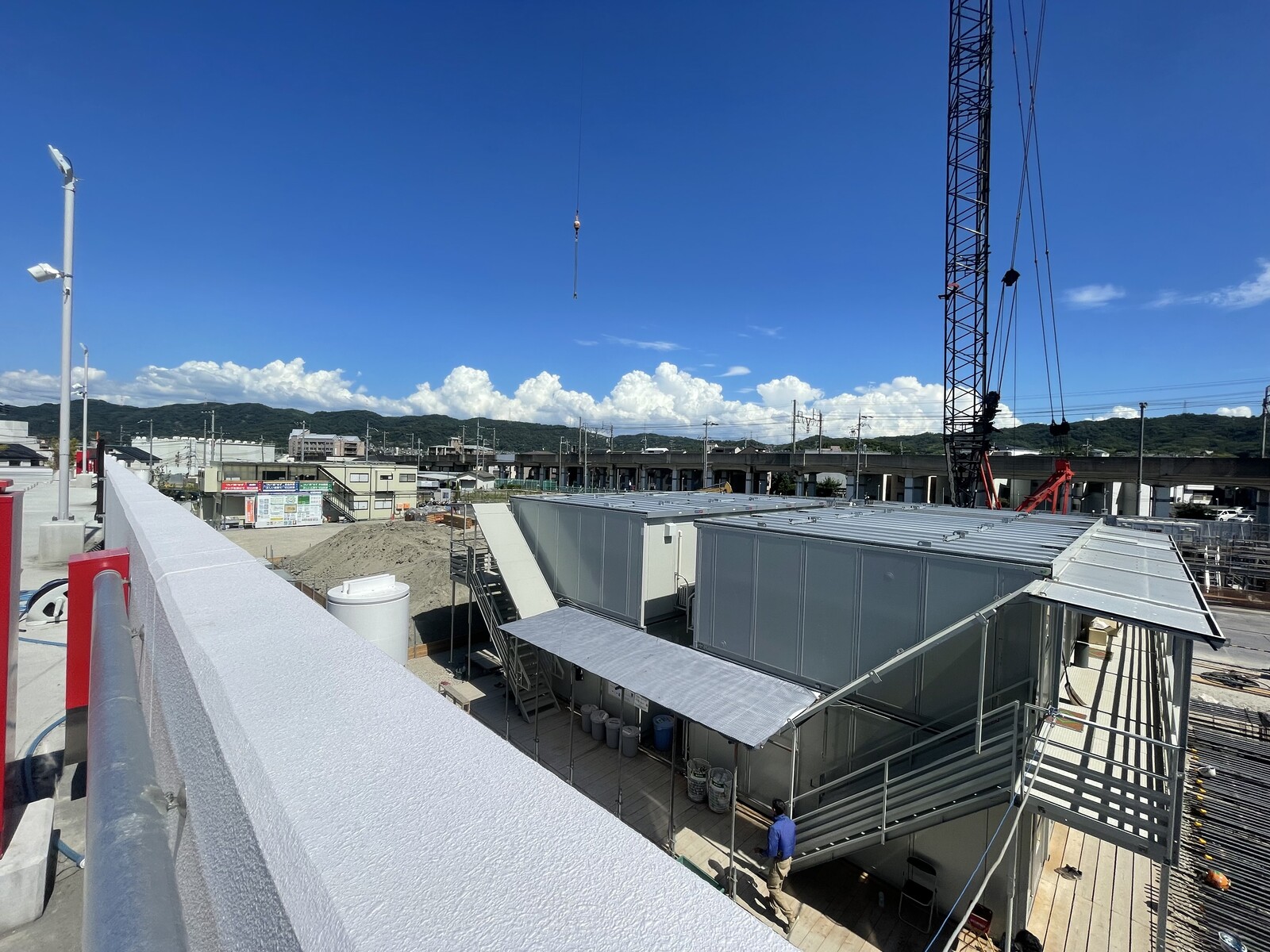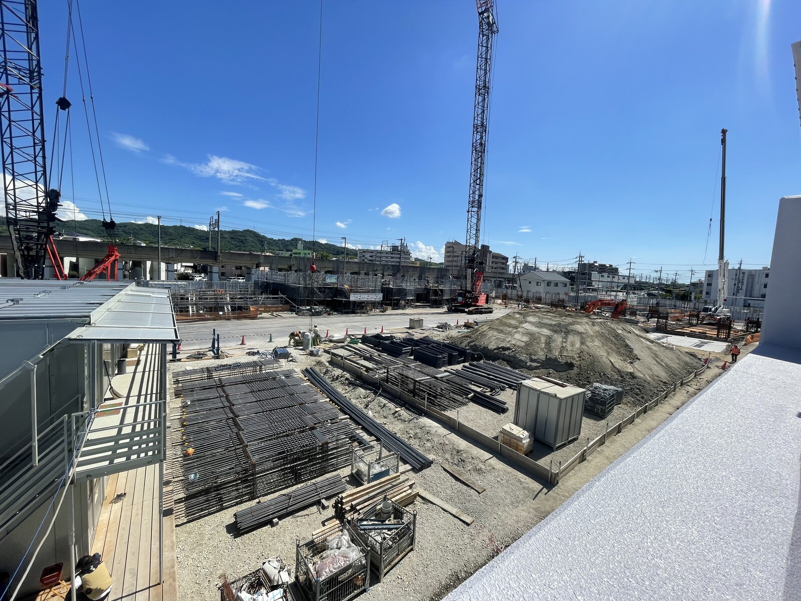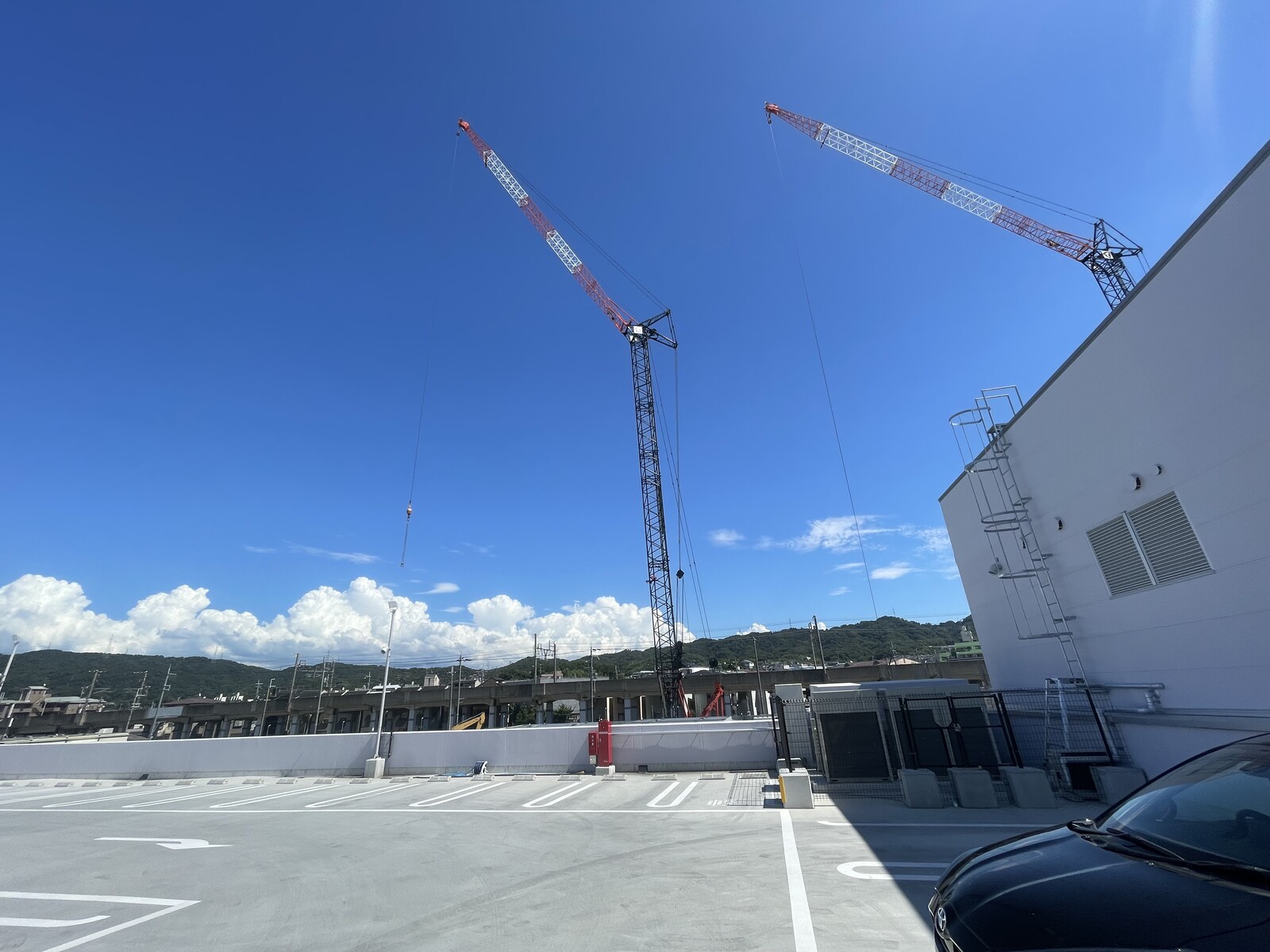 こちらも今年オープンしたばかりのtonarie星田の屋上駐車場から、建築現場を見てみました。