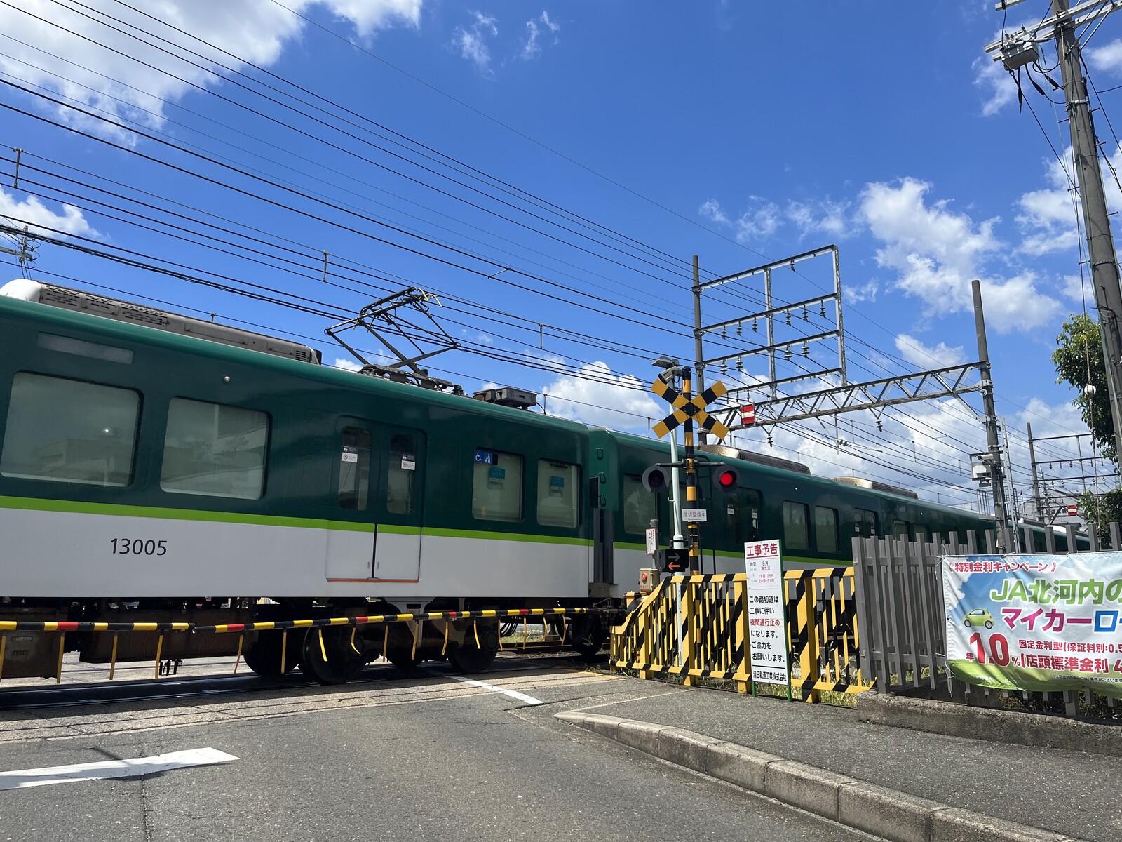 青年の家、JA北河内とかあるところの踏切。