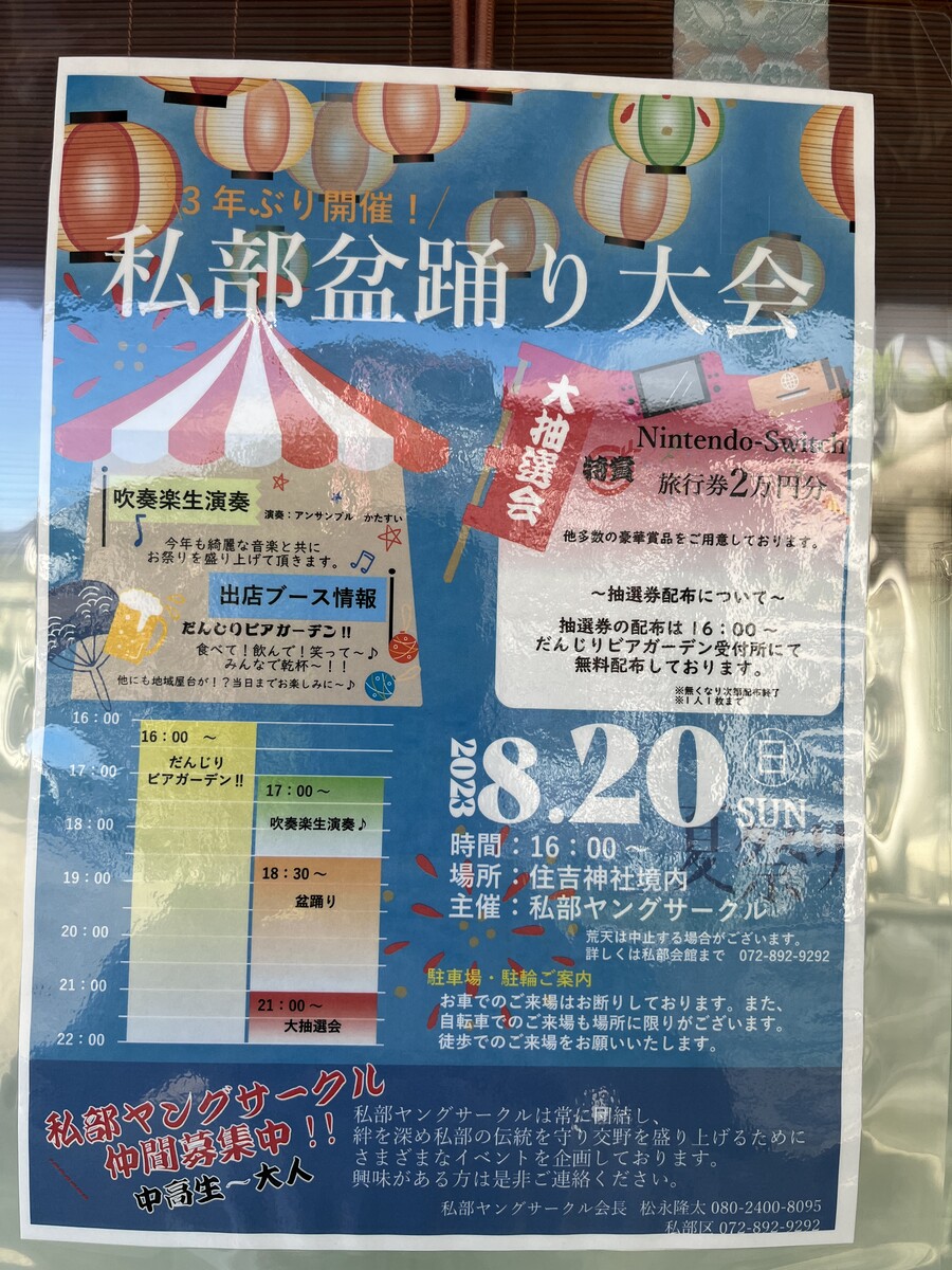 住吉神社での盆踊りはチラシに書いてあるように、3年ぶり!