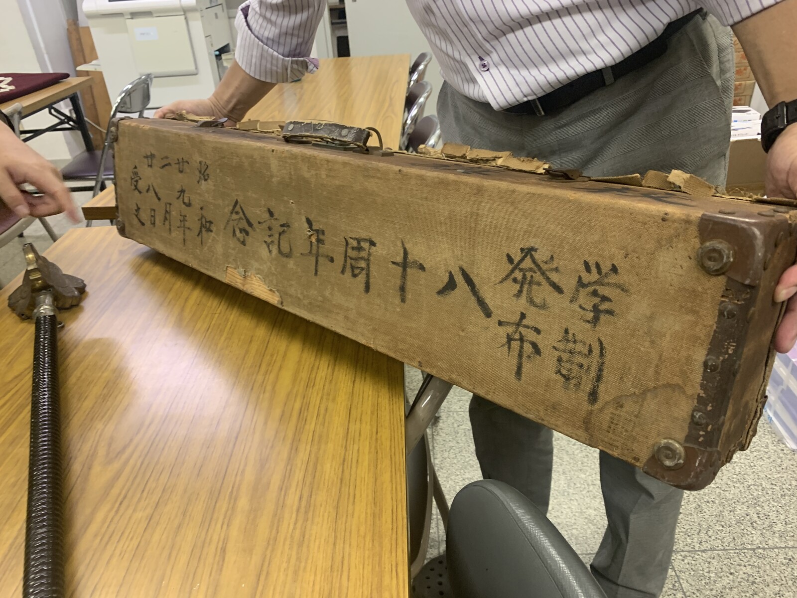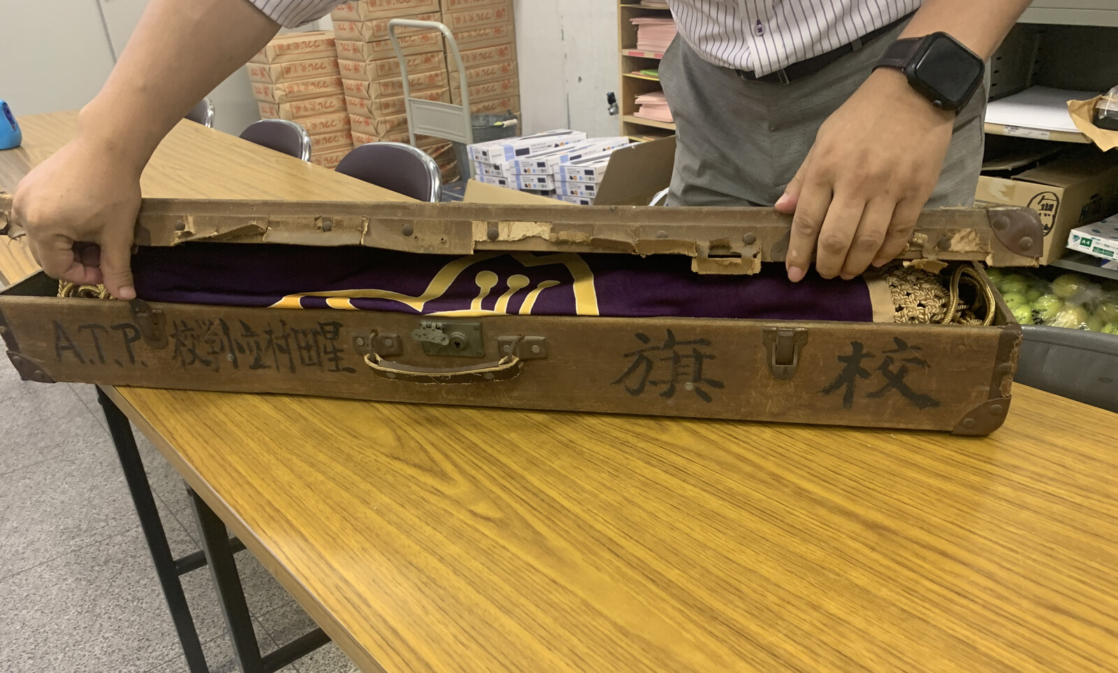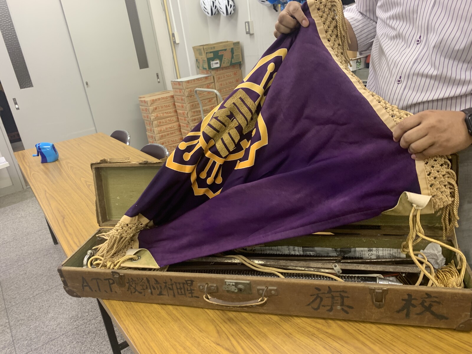 おおお〜中から、やはり「校旗」が!