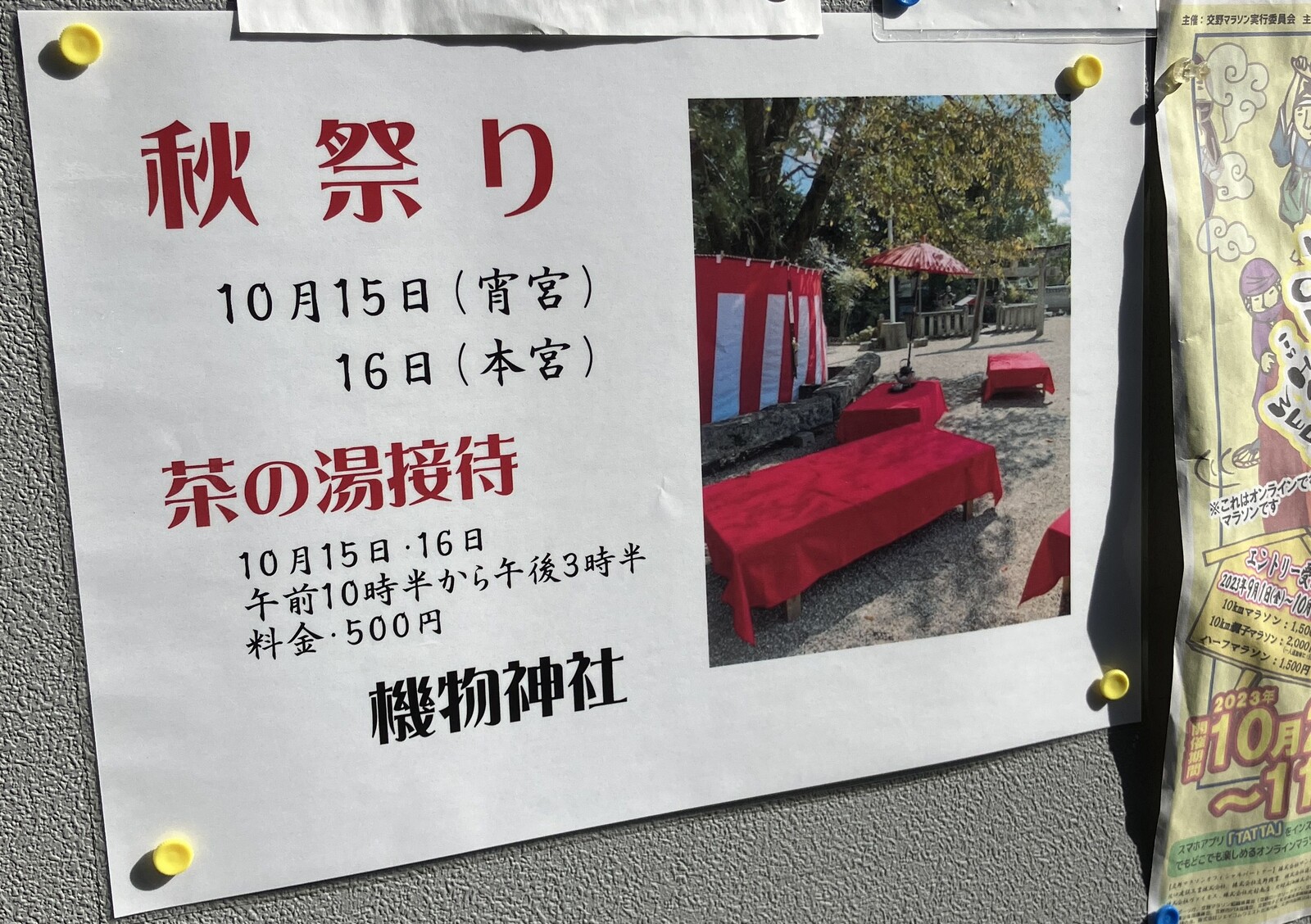 機物神社で秋祭りがあるのは知っていましたが、お茶会があるのは初めて知りました。