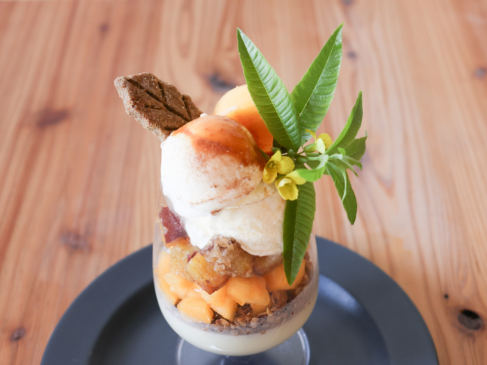 秋を満喫!ハーブとガレットの季節限定パフェ『紅はるかと柿の塩キャラメルパフェ』【交野のお店一品紹介】