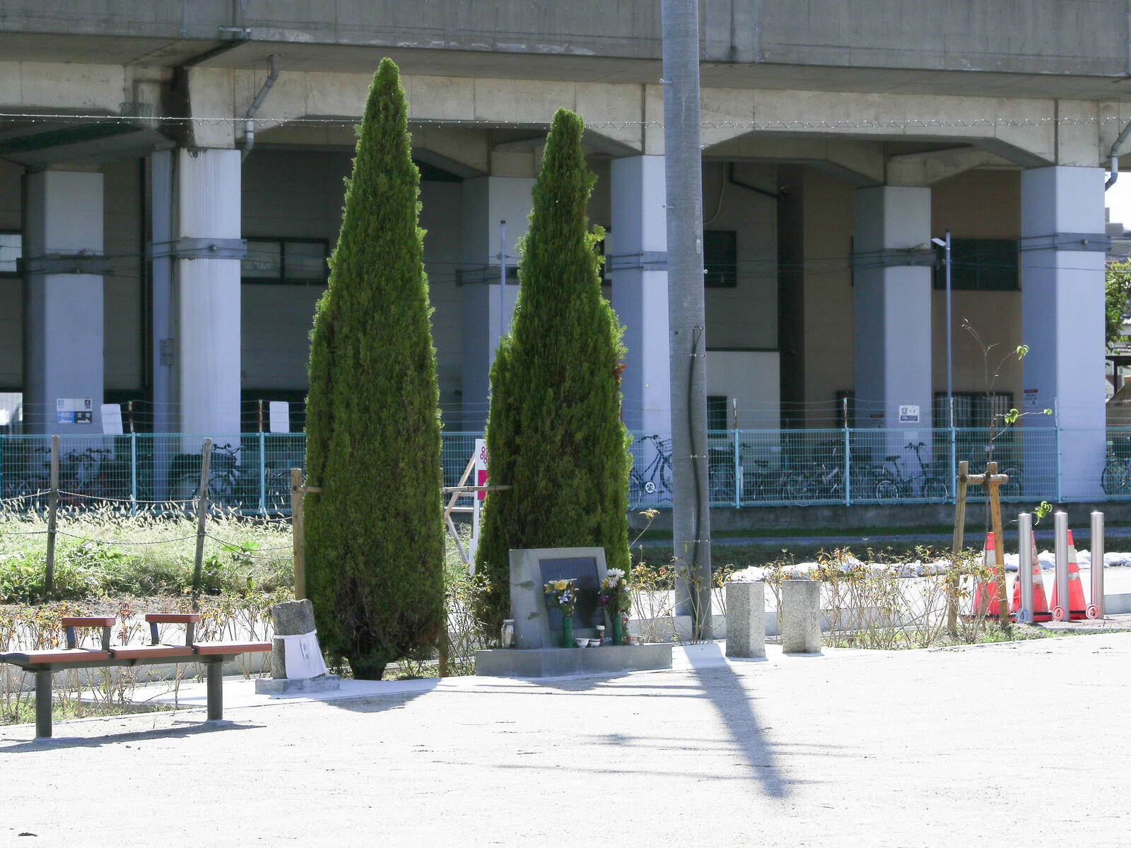 中村中尉の石碑はJR星田駅の線路沿い(河内磐船駅方面)にあったのですが、星田駅前開発に伴い、一時移転を余儀なくされました。