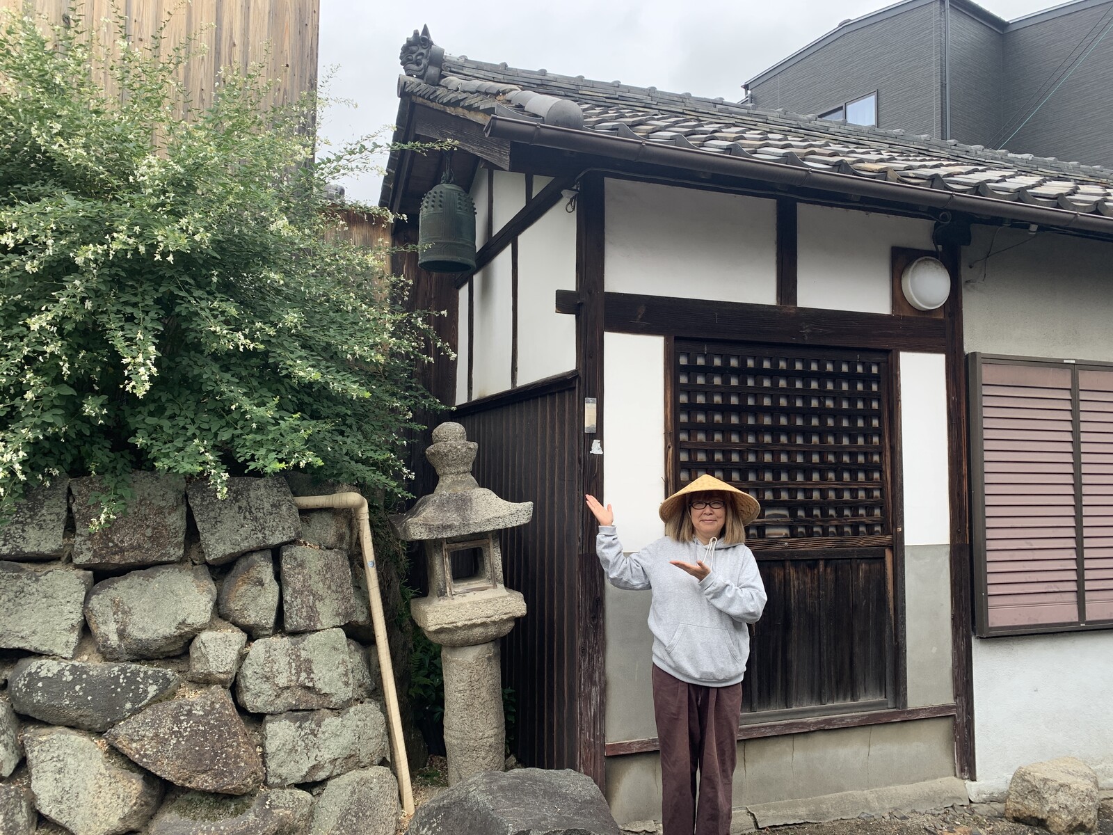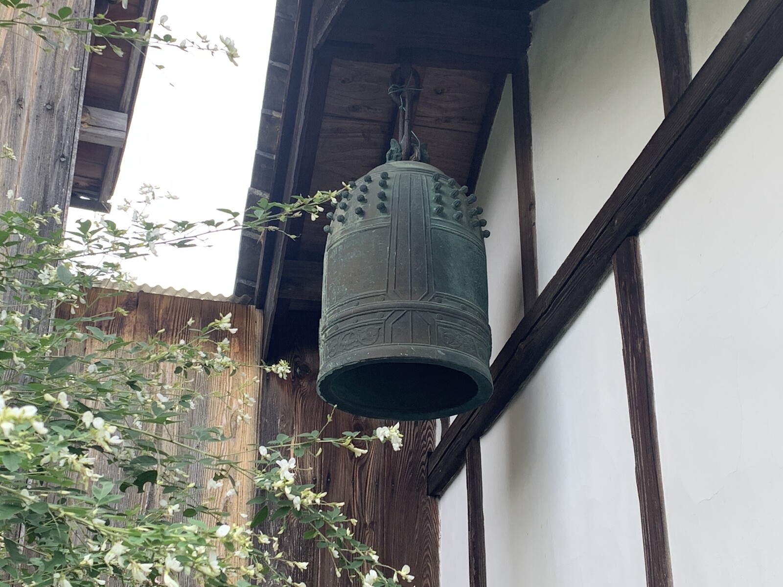 また建物の横には灯篭(とうろう)と鐘(つりがね)があります。