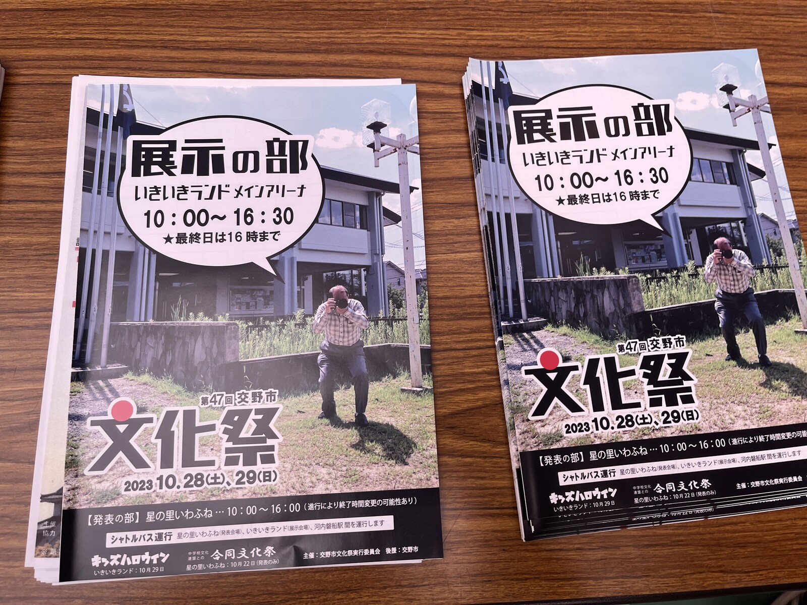 市内の各団体さんのブースで取り組み発表や作品の展示など、それから交野市内の学校の展示もあったりと観ているととても興味深いです。(交野市文化連盟さんの旗も出てる)