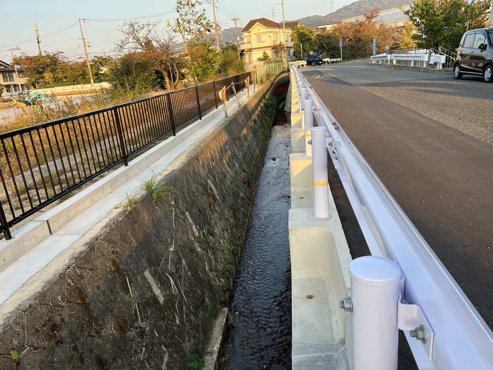 そういえば、今年の6月にも同じ道沿いで護岸工事をやっていて、そっち側はもうきれいに護岸工事が終わっていました。今回の工事もこういう感じになるのかもしれません。