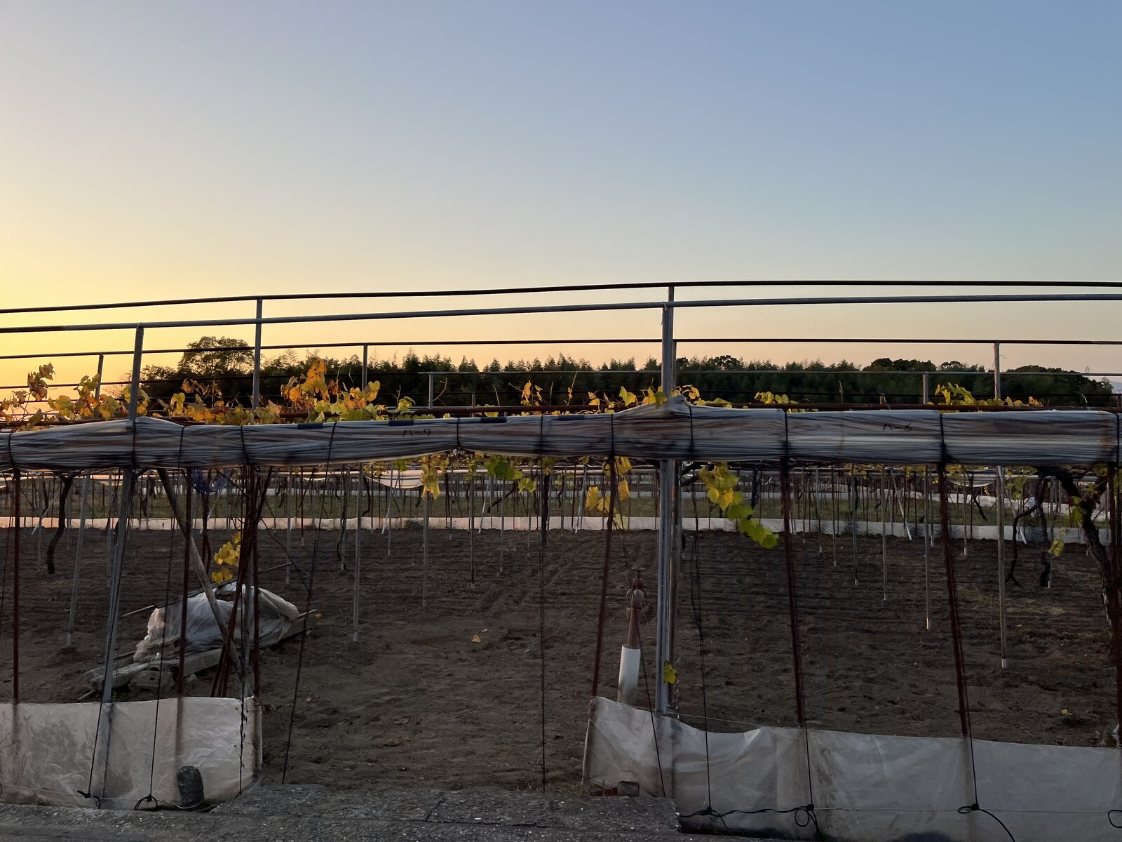 夕暮れに通ると、ぶどう畑はさらに静かな様子にみえますが、実は、この間も来年の収穫にむけていろいろ作業もあるようです。