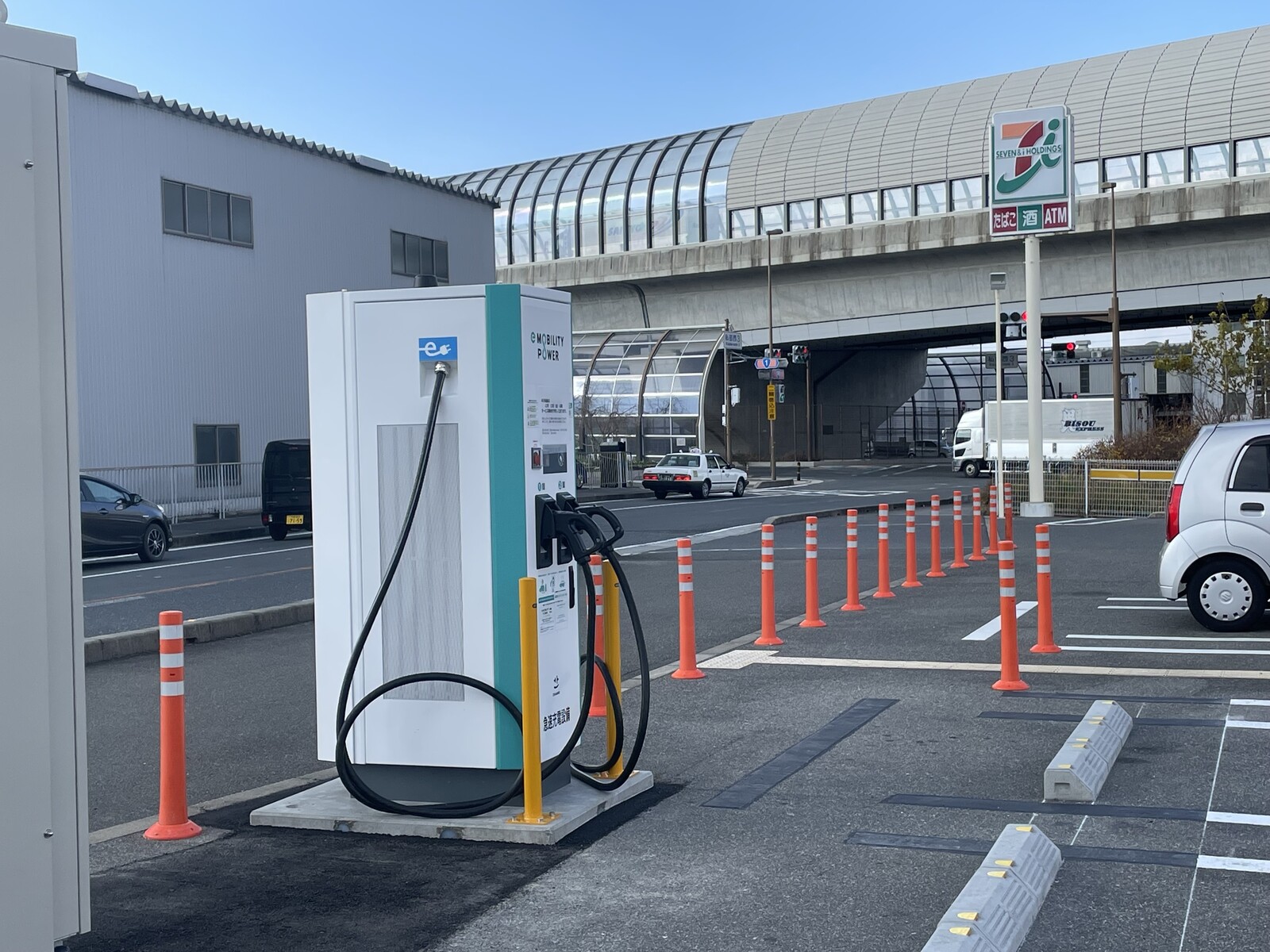 天野が原のセブンイレブン。電気自動車の充電スタンドが出来てる!